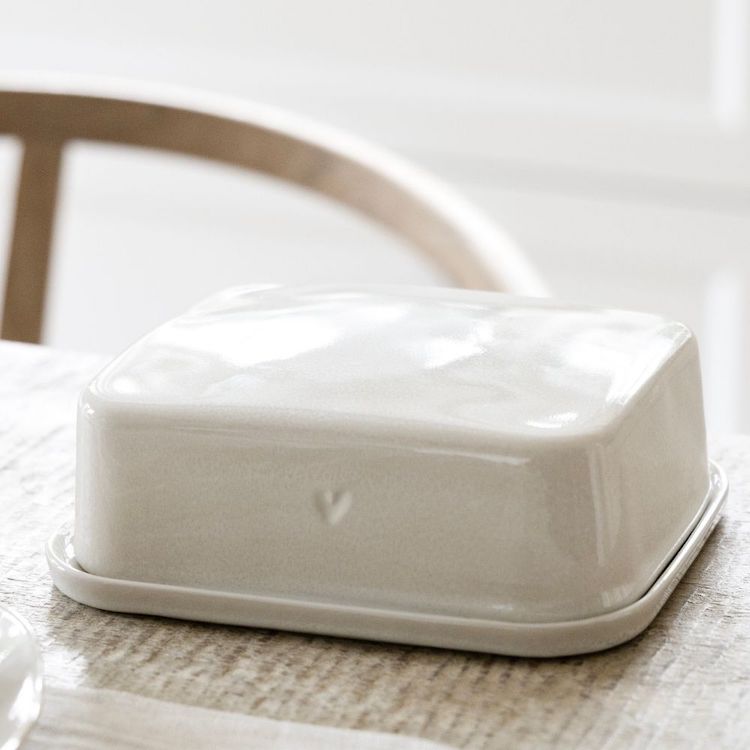 Hier haben Fliegen und Butterdiebe keine Chance! Ein kleines Herzchen hält eisern Wache und sorgt dafür, dass deine Butter sicher und stilvoll verwahrt ist. Die Butterdose von Bastion Collections bringt nicht nur Ordnung auf den Frühstückstisch, sondern zaubert mit ihrem verspielten Detail auch ein Lächeln ins Gesicht.