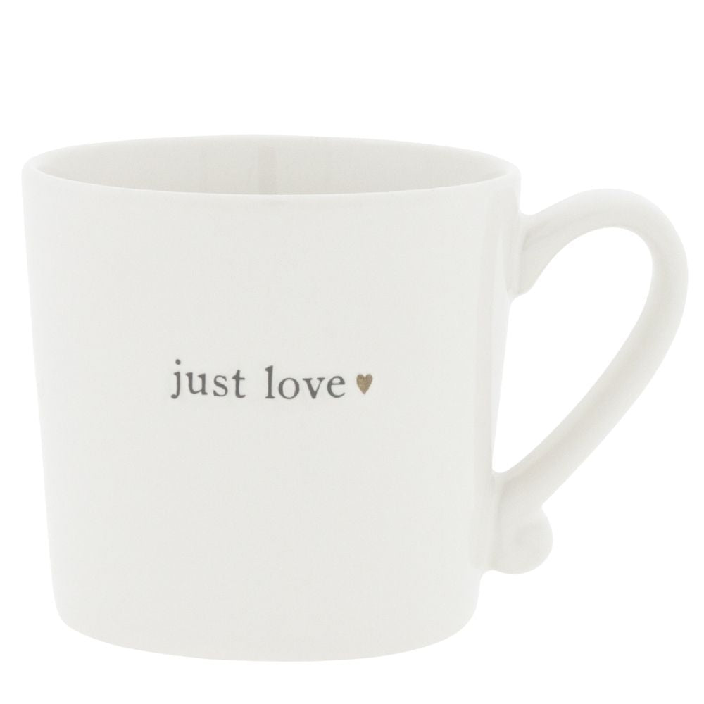 Diese bezaubernde Tasse von Bastion Collections bringt Liebe und Eleganz in Deinen Alltag. Die weiße Keramik ist mit dem verspielten Schriftzug Just love in sanftem Schwarz verziert, der eine warme und einladende Botschaft ausstrahlt. Direkt neben dem Schriftzug funkelt ein kleines braunes Herz, das dem Becher eine besondere, liebevolle Note verleiht. Die Kombination aus der sanften Schrift und dem farbigen Herz sorgt für einen eleganten und zugleich charmanten Look.