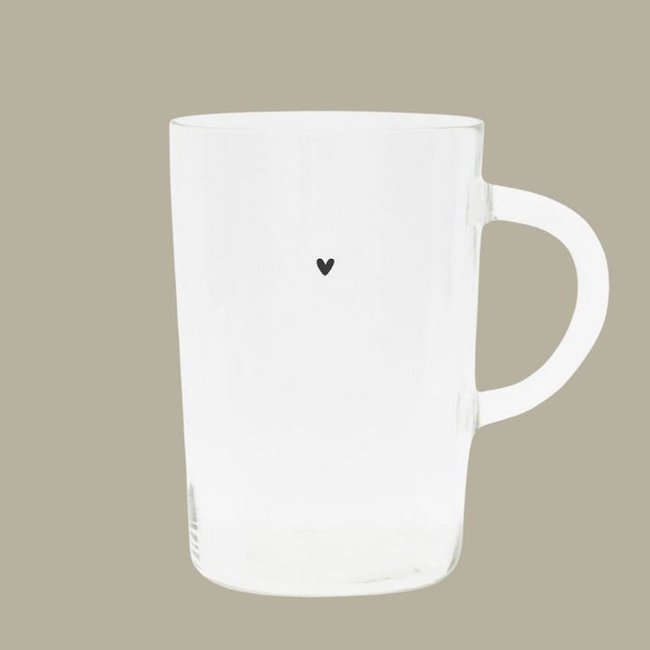 Auf der Vorderseite ziert ein kleines schwarzes Herz das Gefäß, das dem klaren Design eine liebevolle und dezente Note verleiht. Das transparente Glas lässt dich dein Getränk in vollen Zügen genießen, während du die Wärme spürst und dem sanften Dampfen zusiehst.