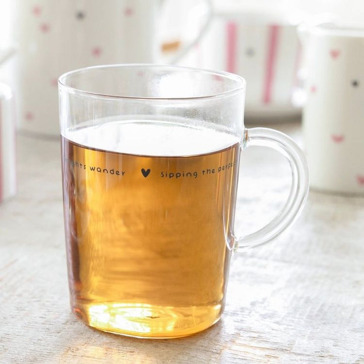 Die wunderschöne Teetasse aus Glas von Bastion Collections macht aus jedem Teestündchen ein kleines, stilvolles Fest. Mit ihrem klaren, schlichten Design und dem umlaufenden Spruch passt sie zu jedem Tisch und fügt sich perfekt in deine Tischdeko ein. Das liebevolle, kleine Herzchen, das typisch für Bastion Collections ist, darf natürlich nicht fehlen.