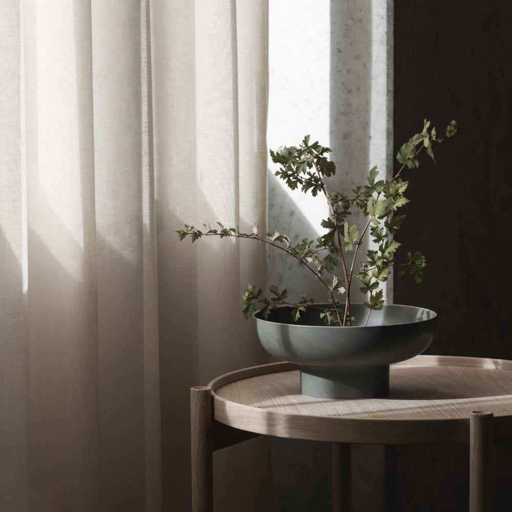 Die flache Vase von Blomus im schicken Duck Green macht ihrem Namen Miyabi alle Ehre. Miyabi bedeutet nämlich übersetzt Anmut, Eleganz oder auch Raffinesse. Mit allen drei Eigenschaften kann die schöne Blumenvase glänzen. Ein herausnehmbares Gitter in der Mitte der 21 x 17 cm Keramik Blomus Vase sorgt dafür, dass Blumen nicht gleich so viel Wasser bekommen und dass du Gewächse ganz im japanischen Stil des Ikebana sanft und achtsam arrangieren kannst.