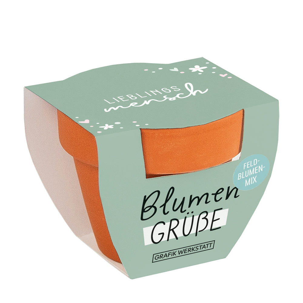 Hier haben wir etwas ganz besonderes für Deinen Lieblingsmenschen. Die kreativen und zugleich nachhaltigen Blumengrüße sind die ideale, kleine Aufmerksamkeit für Deinen Herzensmenschen. Neben einem Terrakottatopf sind die Blumengrüße übrigens mit einem Mix aus Feldblumen-Samen ausgestattet.