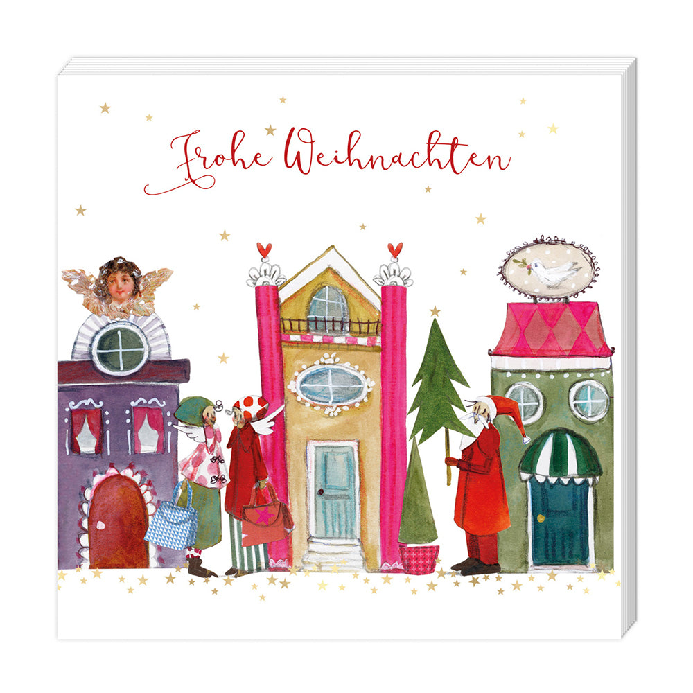 Na, in welches der vielen Häuser trägt der Weihnachtsmann wohl sein nächstes Geschenk? Diese Cocktailservietten ergänzen Deine festlich gedeckte Tafel perfekt. Wir wünschen Dir ein nostalgisches Weihnachtsfest im Kreise Deiner Liebsten.