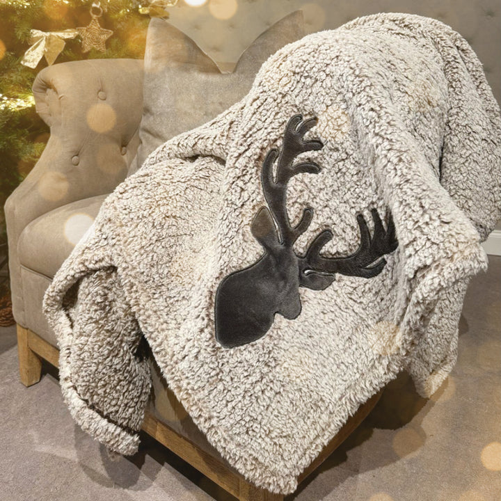 Decke mit Hirschkopf grau