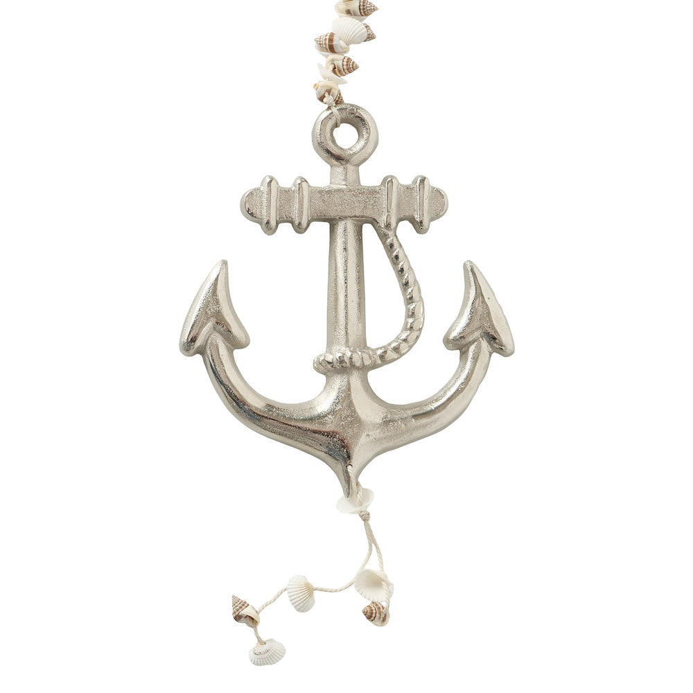 Ein maritimes Statement setzt Du mit diesem traumhaften Anker aus Aluminium. Der Dekoanhänger verleiht Deinem Heim nordisches Wohlfühlambiente. Die angebrachten Muscheln erinnern an Sonne, Strand und Meer. Lasse auch Du Dich von unseren maritimen Accessoires inspirieren.