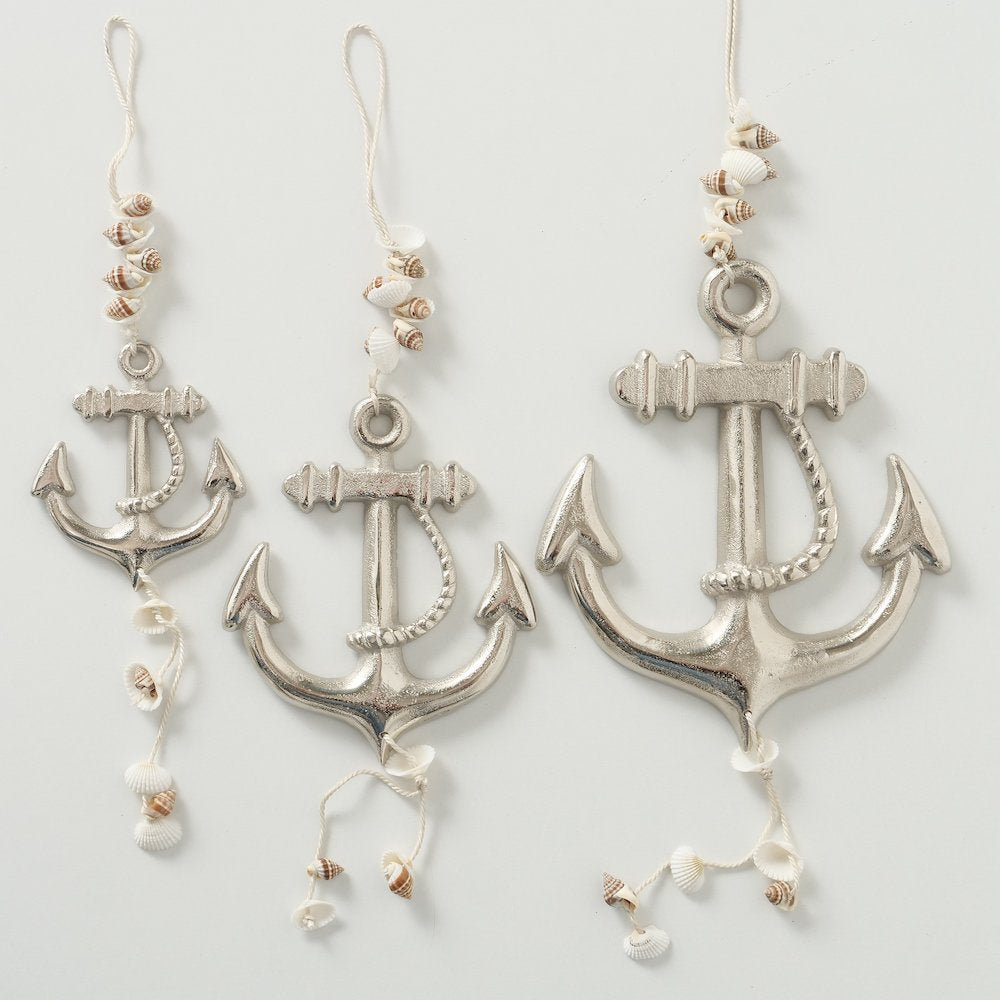 Dekoanhänger Anker mit Muscheln silberfarben groß