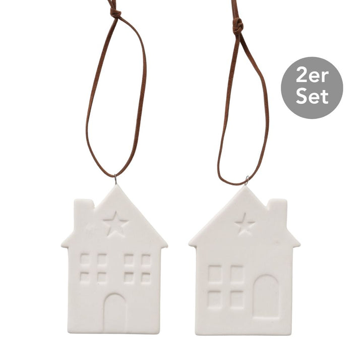 Mit dem Dekohänger Häuser 2er-Set in Weiß kannst Du Deinem Wohnraum eine stilvolle und gleichzeitig gemütliche Stimmung verleihen. Die sorgfältig verarbeiteten Porzellanhäuser sind ein Eyecatcher in der Weihnachtszeit, bringen aber auch das ganze Jahr über eine warme und einladende Atmosphäre in Dein Heim. Mit einer Größe von 6 x 8 cm sind die Häuser tolle Dekoelemente, die nicht aufdringlich wirken.