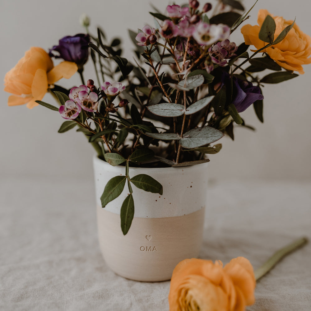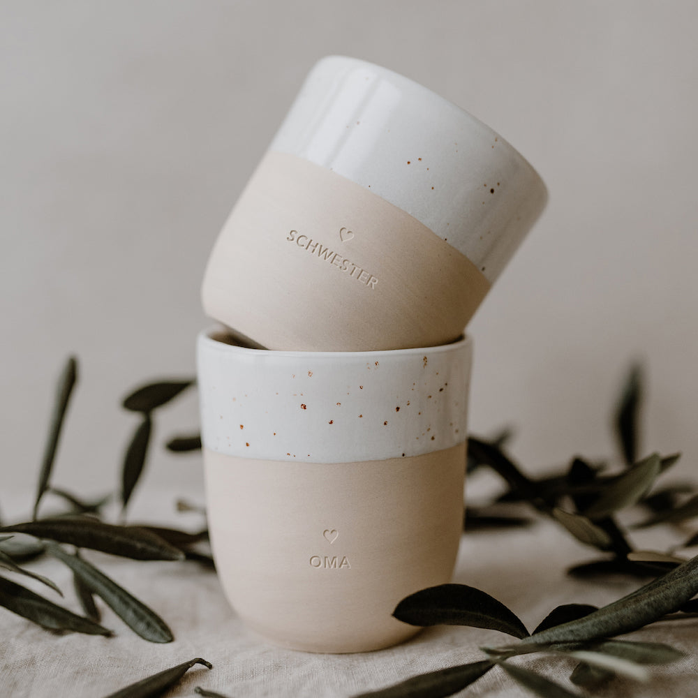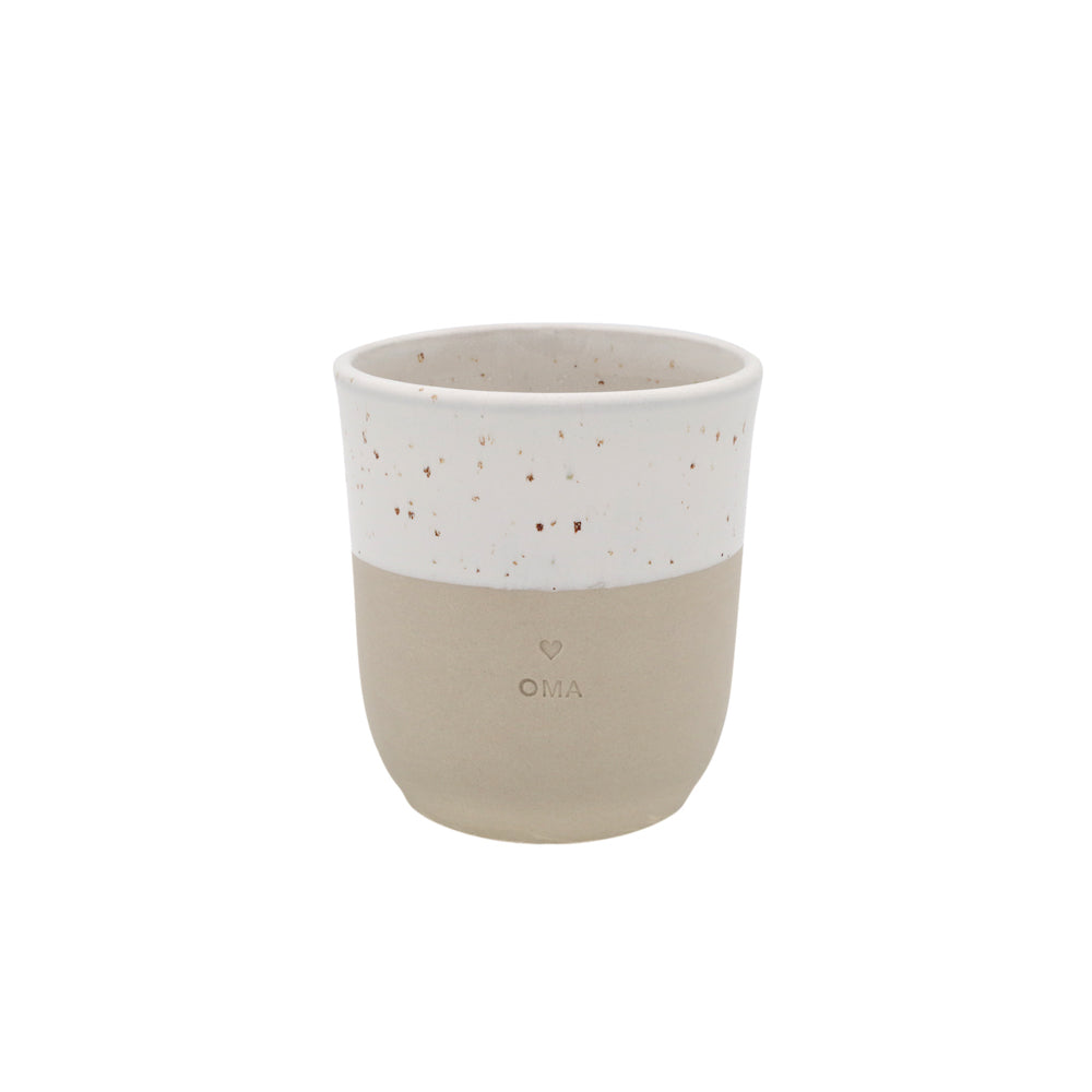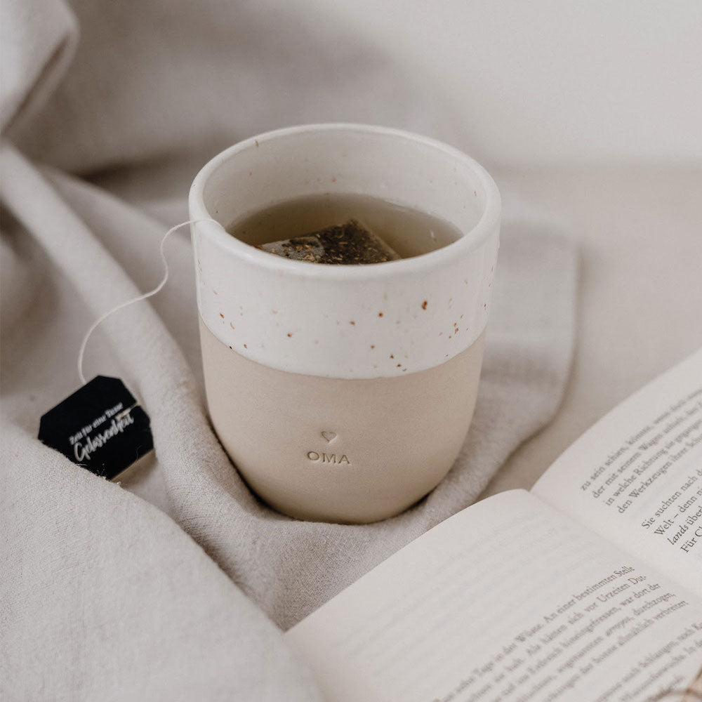 Mit diesem wundervollen Becher von Eulenschnitt geht ein Gruß an alle Omas dieser Welt. In einer kleinen Töpferei in Portugal wird dieser Steingut-Becher liebevoll handgefertigt. Dadurch erhält jeder Becher seinen ganz eigenen Touch, und es gibt Unterschiede in der Drucktiefe, der Höhe und Geradlinigkeit. Gerade das macht den Charme dieses Geschirrs aus. Entdecke weitere tolle Steingut-Artikel von Eulenschnitt hier in unserem Shop.