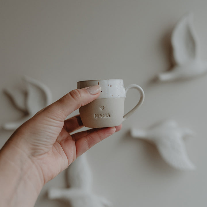 Für alle Espressoliebhaber gibt es die tollen Tassen aus Steingut nun auch in klein. Die einzigartige Glasur und die Prägung Mama machen jede Tasse zu einem Unikat. Mit einer Größe von ca. 5,5 x 5 cm ist die Tasse perfekt für Deinen morgendlichen Espresso. Die Tasse wurde in einer kleinen Töpferei in Portugal gefertigt und ist ein ideales Geschenk für alle Mamas. Entdecke die trendigen Steingut-Produkte von Eulenschnitt und lasse Dich begeistern.
