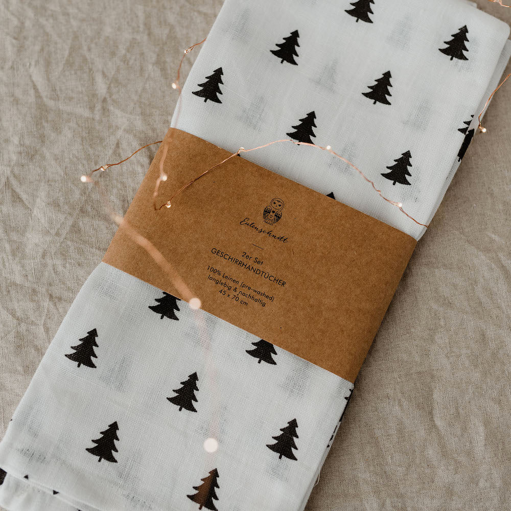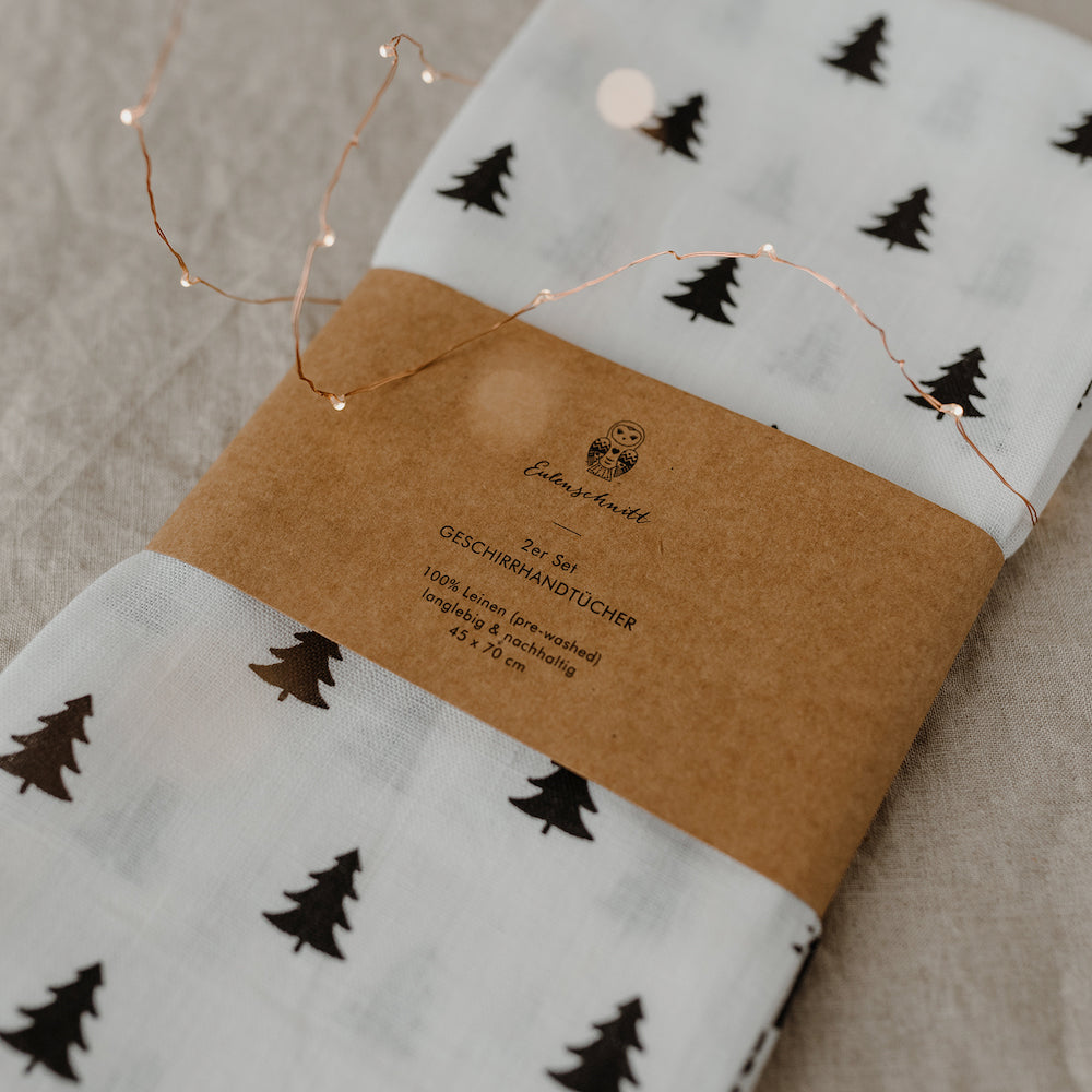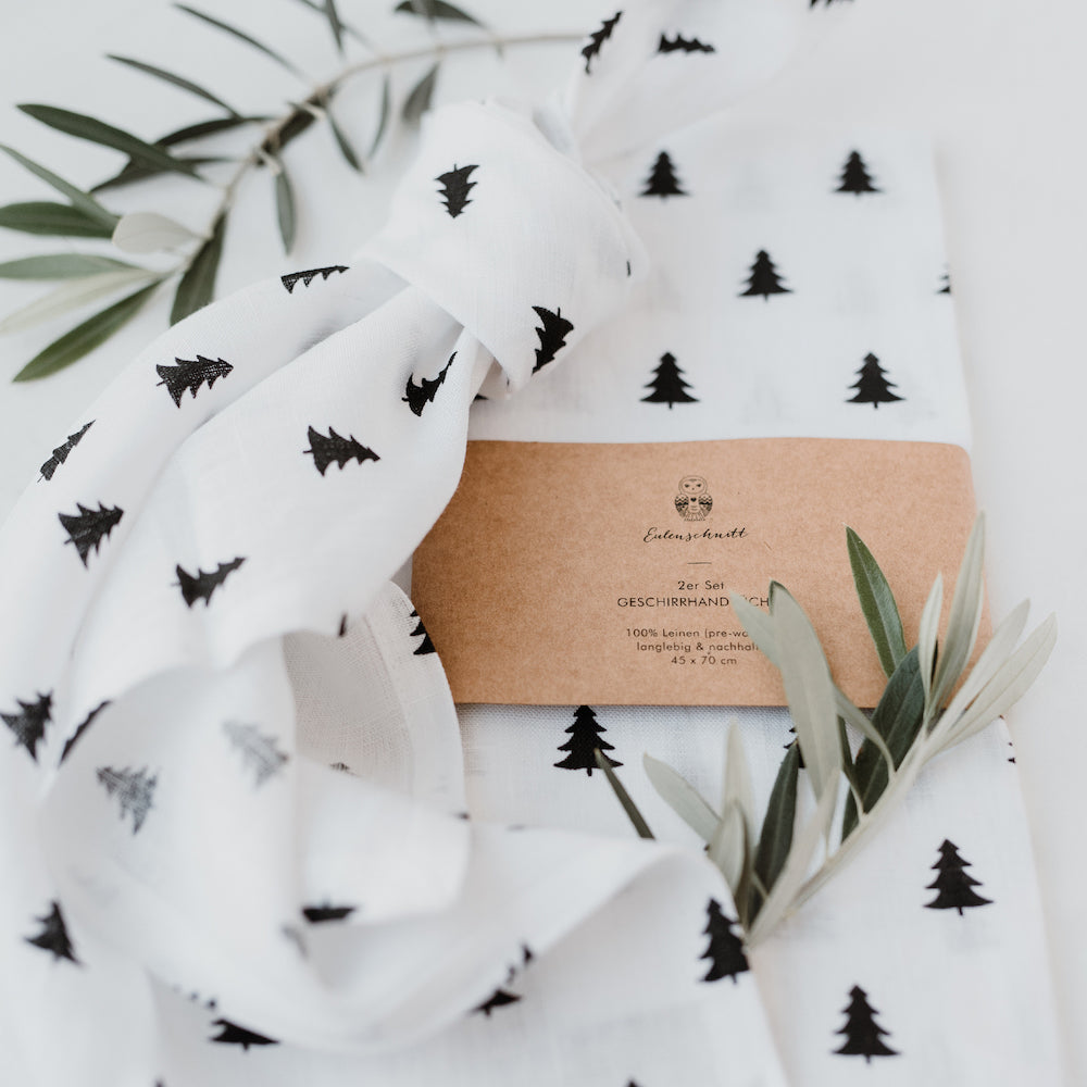 Jetzt kommt sogar Weihnachtstimmung in der Küche auf mit dem Eulenschnitt Geschirrtücher Tannen aus Leinen 2er-Set! Der Name verrät es schon, die Tücher sind aus Leinen und damit langlebig und widerstandsfähiger als so manche Baumwolle. 70 x 45 cm sind Deine neuen Geschirrtücher aus dem Hause Eulenschnitt, welche sich übrigens bei bis zu 40°C waschen lassen.