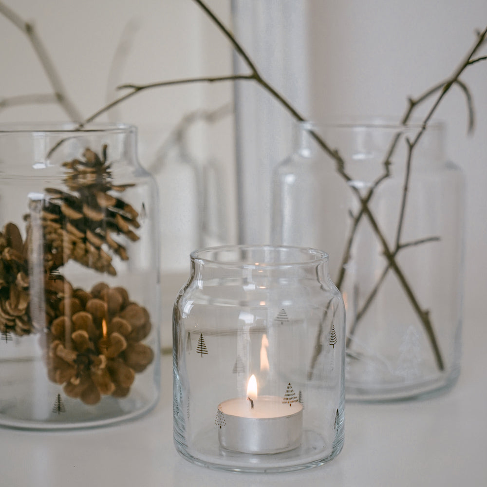 Diese kleine Vase aus Glas von Eulenschnitt mit den hübschen Tannen vervollständigt Deine festliche Dekoration. Stelle ein paar Zweige in die Vase oder nutze sie als Windlicht. Deiner Fantasie sind keine Grenzen gesetzt.