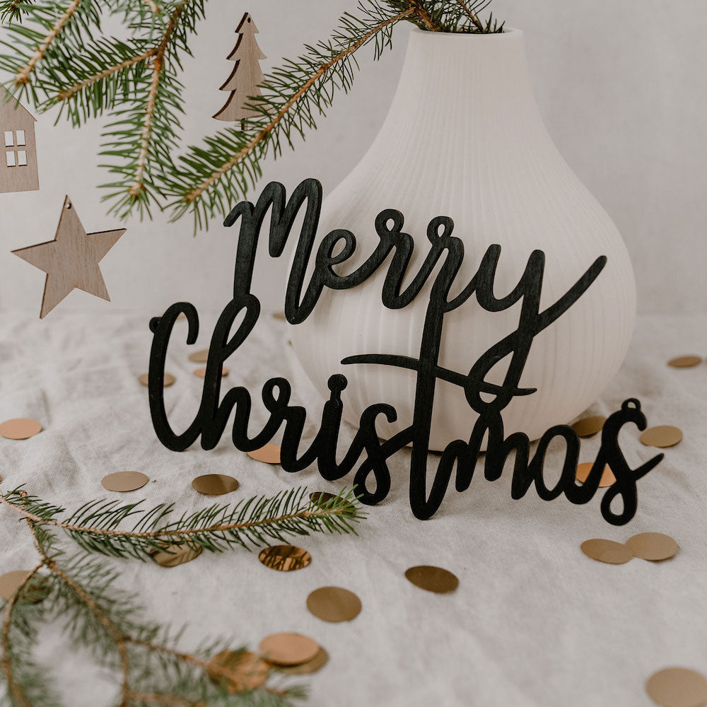 Eulenschnitt Holzschriftzug Merry Christmas Schwarz