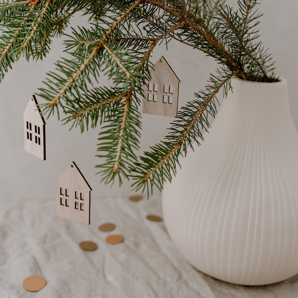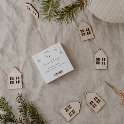 Alle Jahre wieder kannst Du Dich aufs Neue über die kleinen Häuser freuen, wenn Du mit Ihnen Dein Zuhause dekorierst. Bestehend aus 8 schönen Häusern besticht dieses Set durch das schlichte und dennoch verspielte Design. Mit dem beigepackten feinen weißen Garn lassen sich die Häuser sogleich aufhängen. Du kannst aber selbstverständlich auch ein Garn Deiner Wahl nutzen und den Häusern Deinen persönlichen Stil verleihen.