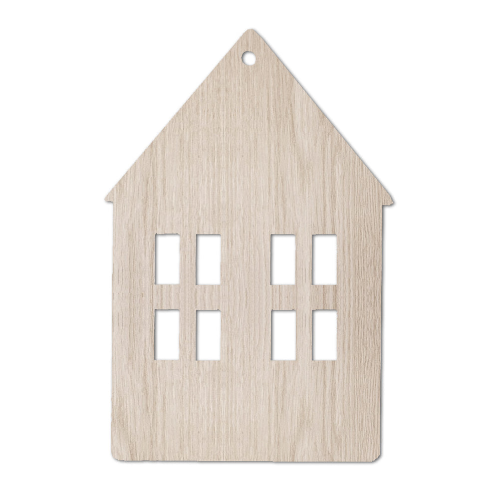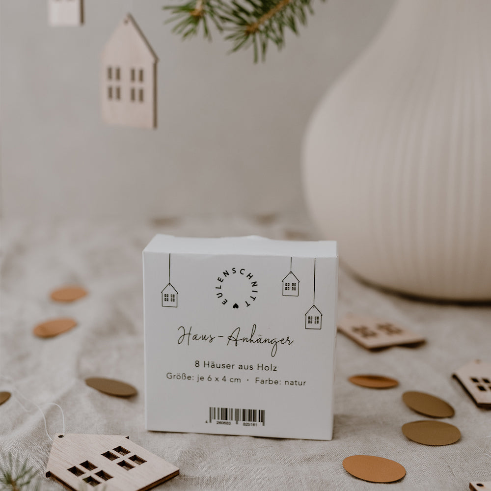 Eulenschnitt Holzanhänger Haus 8er-Set naturfarben