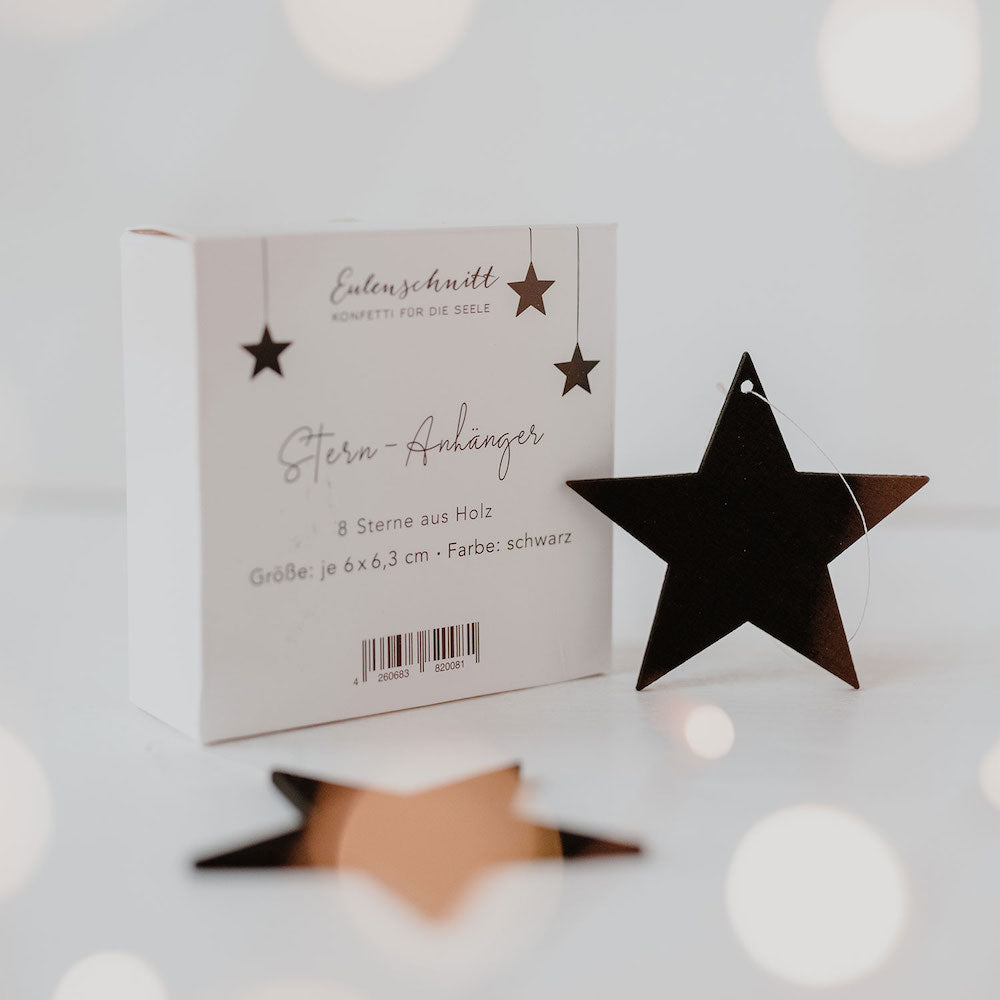 Eulenschnitt Holzanhänger Stern 8er-Set schwarz
