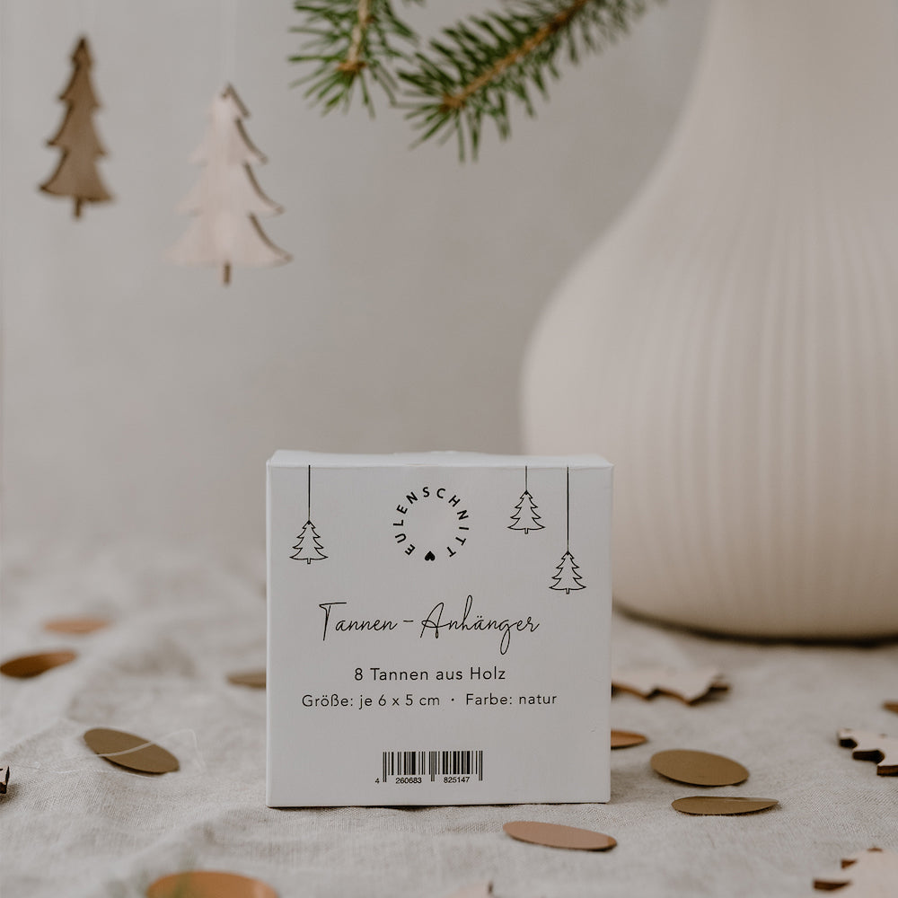 Eulenschnitt Holzanhänger Tanne 8er-Set naturfarben