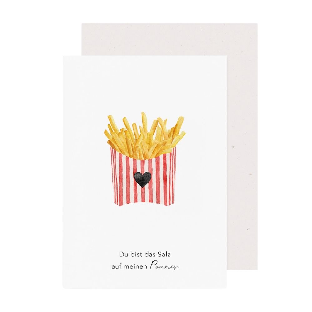 Ein passender Umschlag ist ebenfalls enthalten, sodass du die Karte direkt verschenken oder verschicken kannst. Ob per Post oder persönlich überreicht – die Klappkarte Pommes ist ein kleiner Gruß mit großer Wirkung.