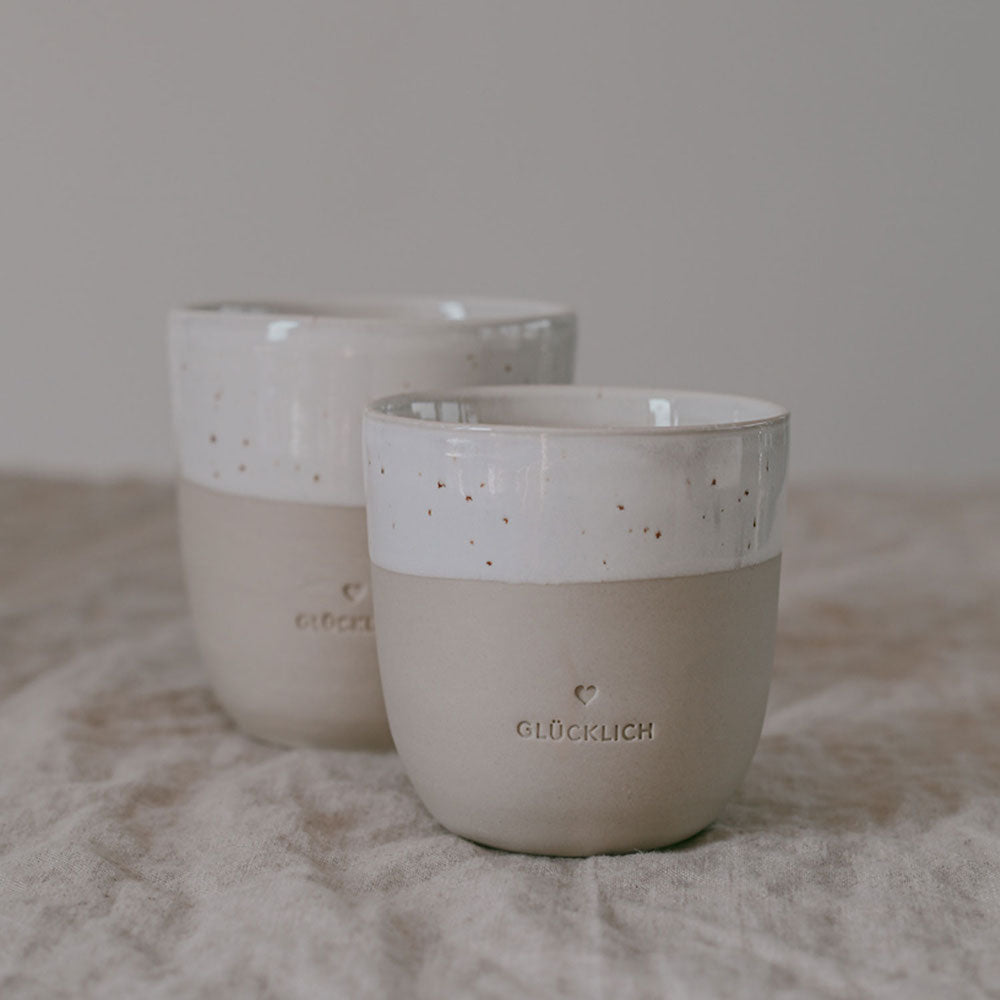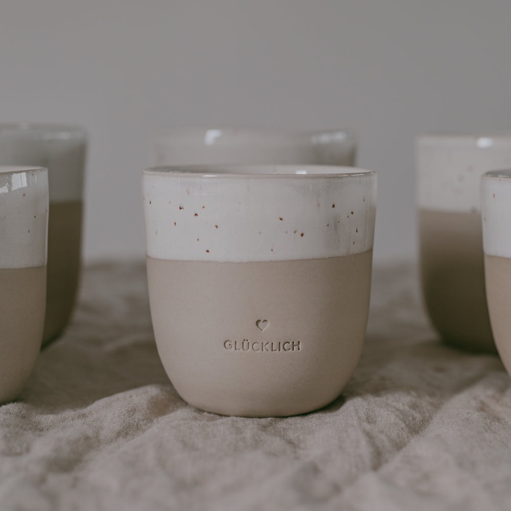 Endlich gibt es auch den kleinen Bruder vom Eulenschnitt Becher Glücklich. Von einer kleinen Töpferei in Portugal handgefertigt, ist jeder Becher ein Unikat. Trotz seines minimalistischen Aussehens ist der Becher ein absoluter Hingucker auf Deinem Tisch und ein Muss für alle Schleckermäulchen. Der Becher kommt in einem kleinen Geschenkkarton zu Dir nach Hause. Also auch was für echte Lieblingsmenschen!