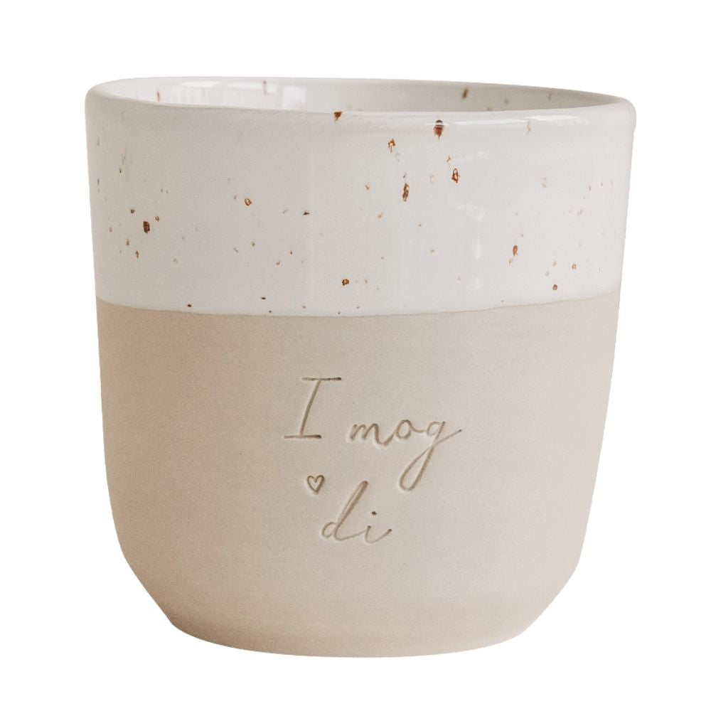 Der limitierte Becher I mog di von Eulenschnitt aus Steingut ist ein besonderes Schmuckstück für alle, die ihre Liebe auf stilvolle Weise zeigen möchten. In einem warmen Beige gehalten, strahlt der Becher Behaglichkeit und natürliche Eleganz aus. Mit dem liebevollen Schriftzug I mog di bringt er eine herzliche Botschaft direkt in deinen Alltag.