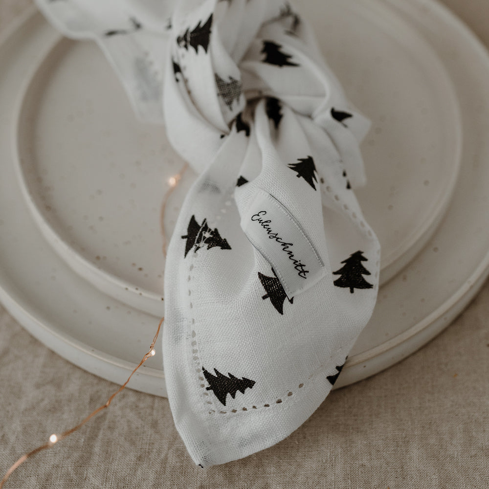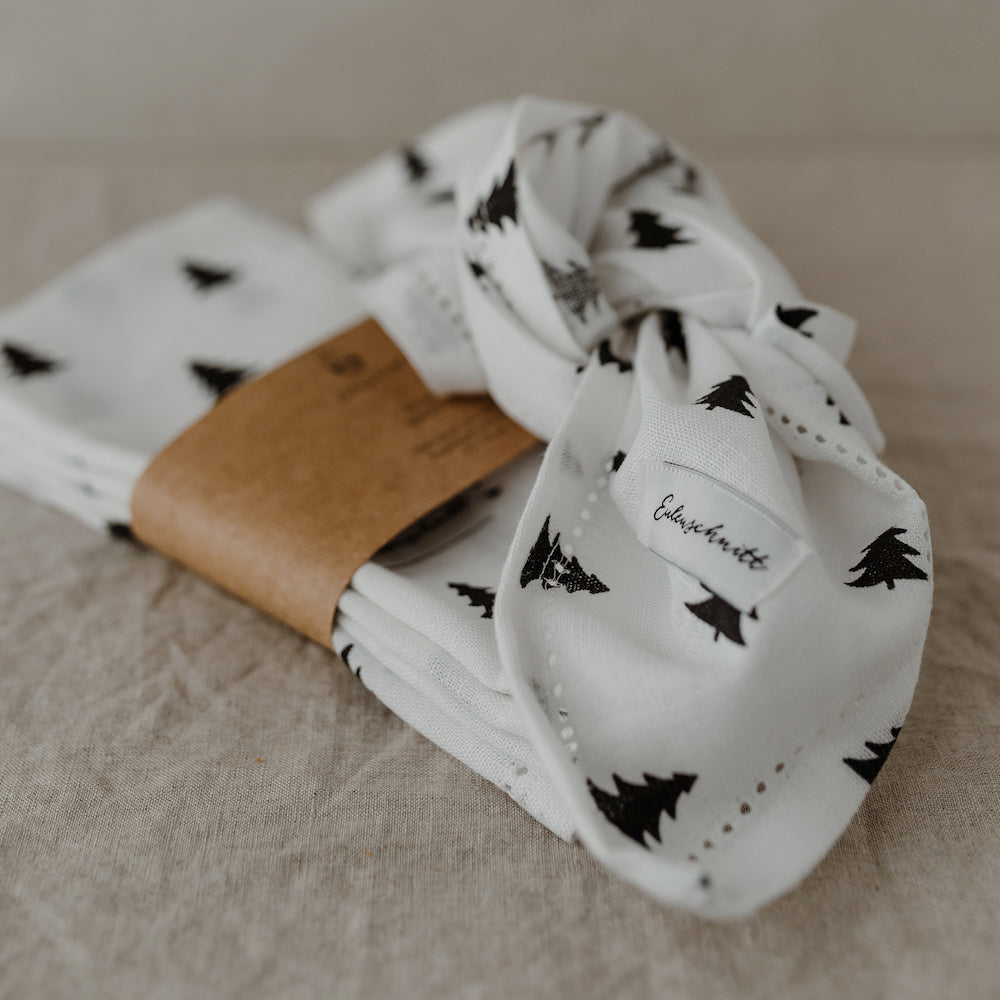 Eulenschnitt Servietten Tannen aus Leinen 4er-Set