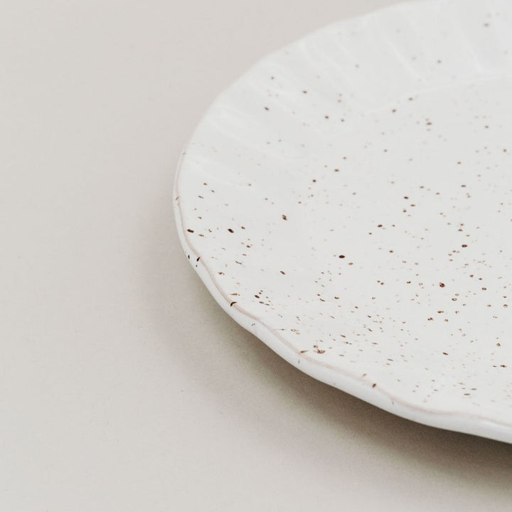 Die Sprenkel erinnern an feinen Sand, an Erde, an beruhigende Naturtöne. Sie wirken nie aufdringlich, sondern fügen sich dezent in jedes Arrangement ein. Du legst dein Abendessen darauf, vielleicht eine Pasta, ein Stück Quiche oder einfach einen bunten Salatteller – und plötzlich sieht dein Essen nicht nur lecker aus, sondern auch stilvoll serviert.