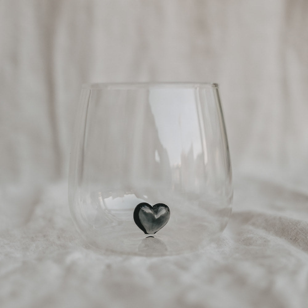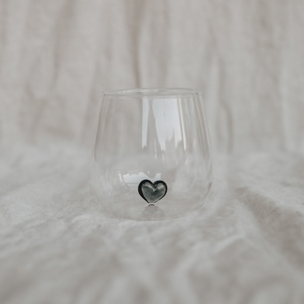 Entdecke das Eulenschnitt Trinkglas mit seiner schwarzen Herzfigur am Boden. Mit einer Größe von ca. 9 x 9 cm und einem Fassungsvermögen von ca. 370 ml ist es ideal für Kaltgetränke wie Eistee, Limonade oder Cocktails. Perfekt für romantische Abende, besondere Anlässe oder als stilvolles Geschenk. Eleganz trifft auf Funktionalität! Lasse Dich inspirieren und entdecke die trendigen Produkte von Eulenschnitt hier in unserem Shop.