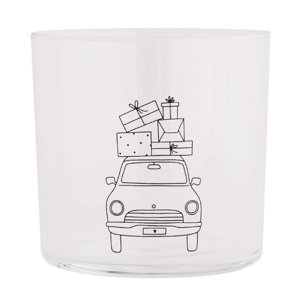 Das Trinkglas von Eulenschnitt begeistert mit einem liebevollen Weihnachtsmotiv, das sofort festliche Stimmung verbreitet. Auf der Außenseite ist in feinem schwarzen Aufdruck ein Weihnachtsauto zu sehen, das auf seinem Dach mit sorgfältig verpackten Geschenken beladen ist. Dieses detailreiche Motiv verbindet auf charmante Weise Tradition und fröhliche Festtagsatmosphäre.