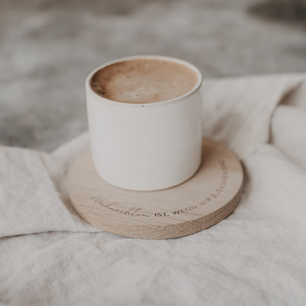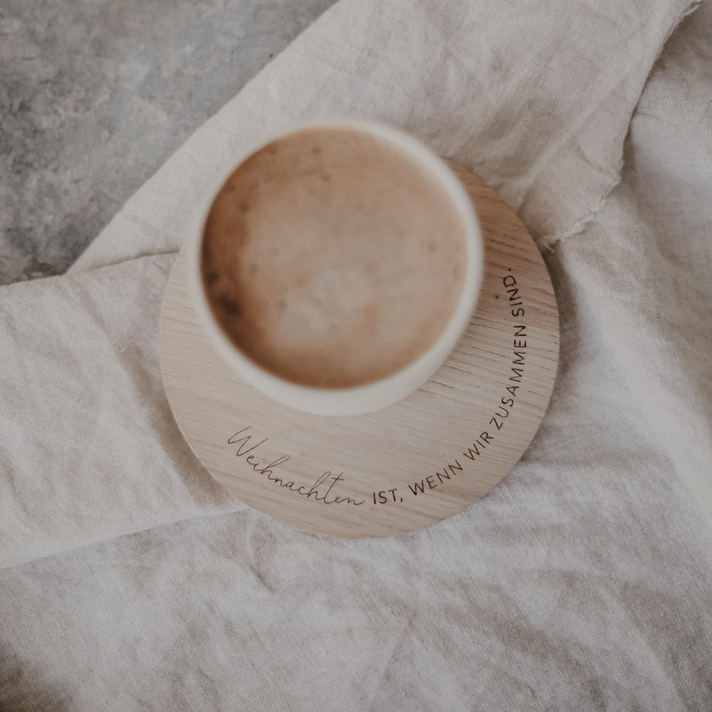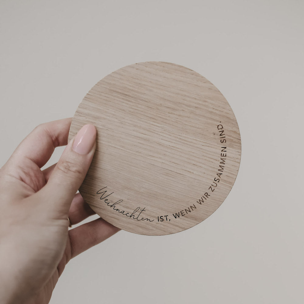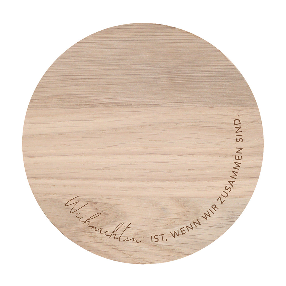 Weihnachten ist, wenn wir zusammen sind. Dieser wundervolle Untersetzer aus Eichenholz vervollständigt Deine festlich gedeckte Tafel und begrüßt Freunde und Familie. Das schlichte Design und die bedeutungsvolle Botschaft machen den Untersetzer von Eulenschnitt zu einem dekorativen Element in Deinem Zuhause.