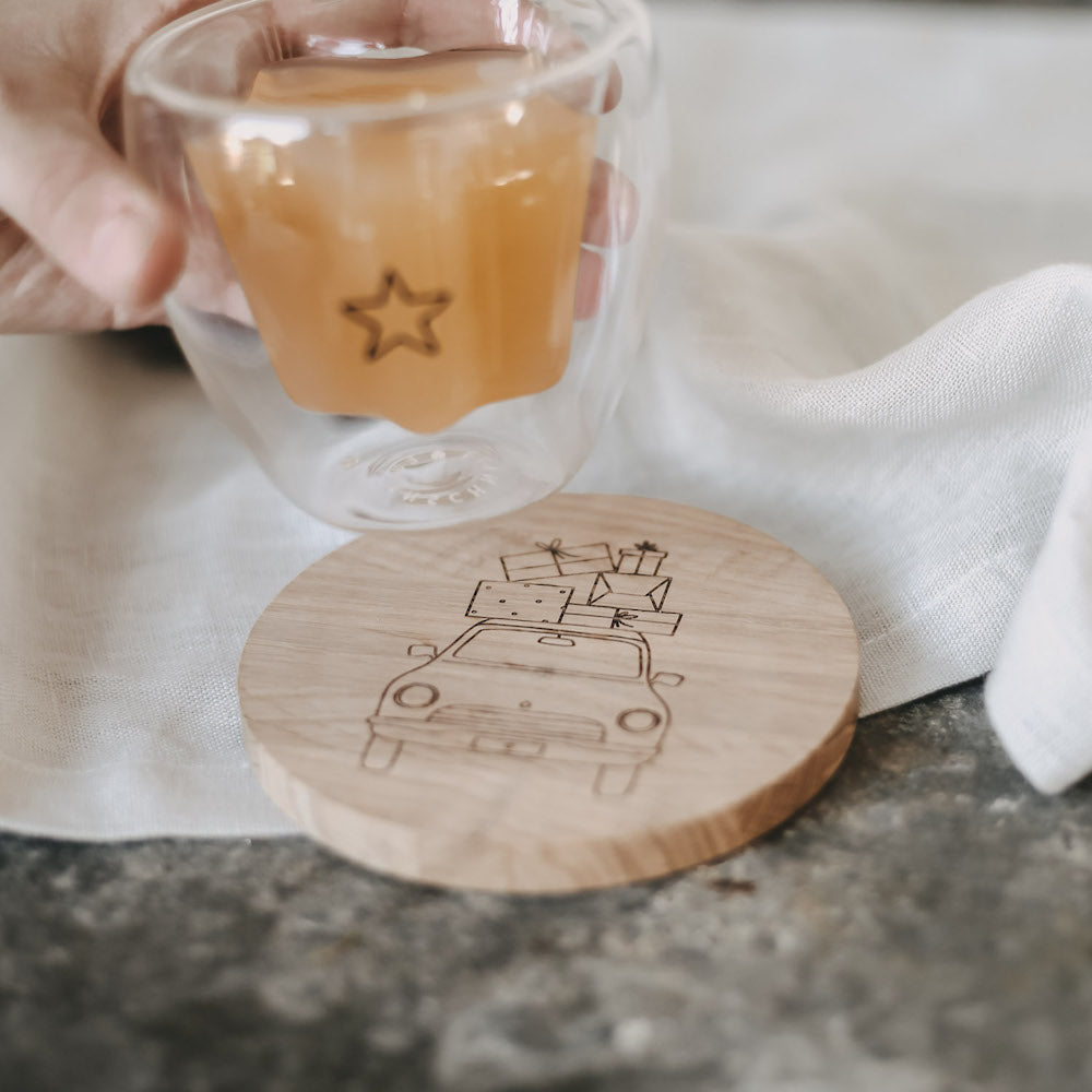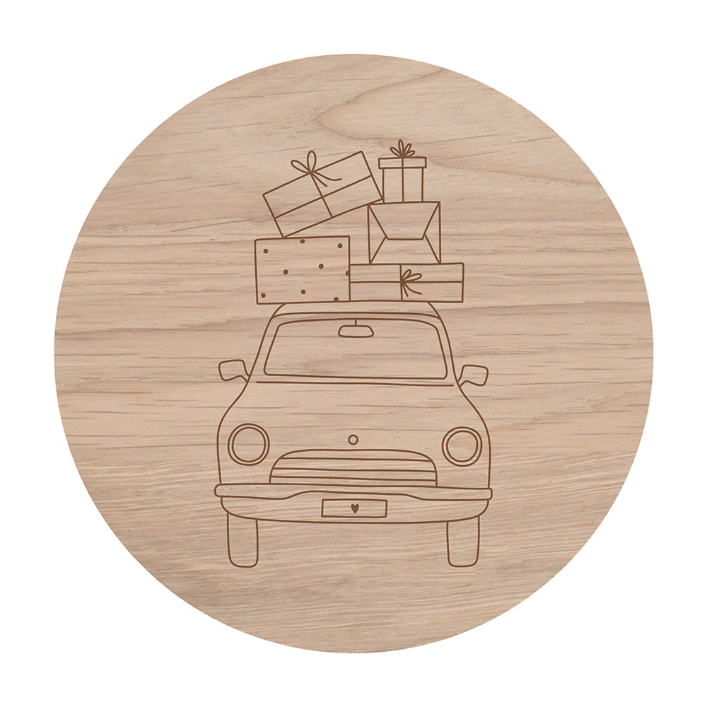 Weihnachten ist, wenn die Familie mit dem Auto vorfährt, um fröhliche Stunden miteinander zu verbringen. Dieser wundervolle Untersetzer aus Eichenholz vervollständigt Deine festlich gedeckte Tafel und begrüßt Freunde und Familie. Das schlichte Design und die bedeutungsvolle Botschaft machen den Untersetzer von Eulenschnitt zu einem dekorativen Element in Deinem Zuhause.