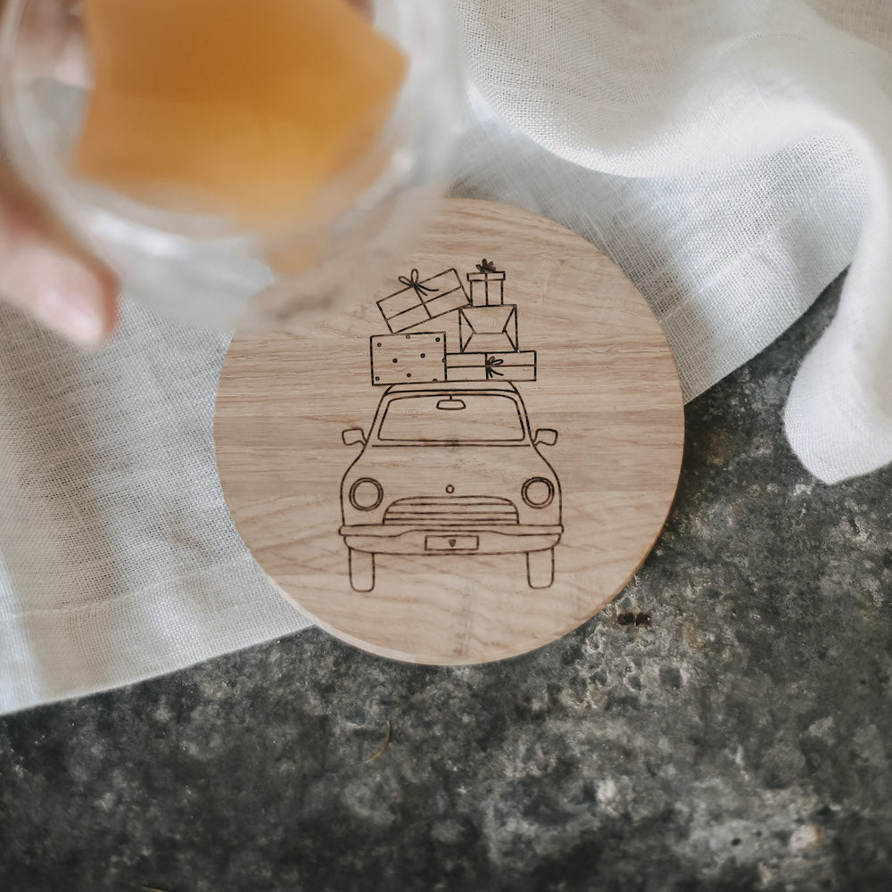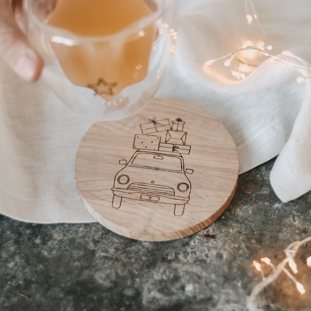 Eulenschnitt Untersetzer aus Eiche Weihnachtsauto