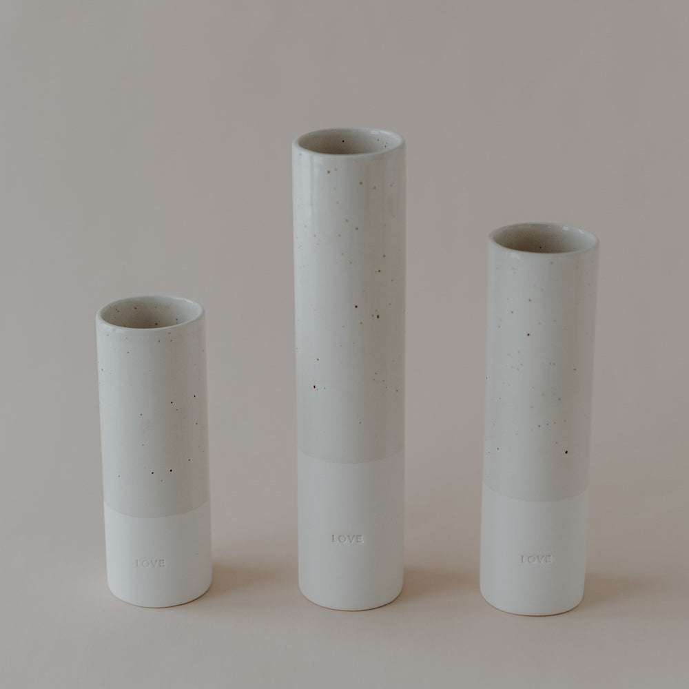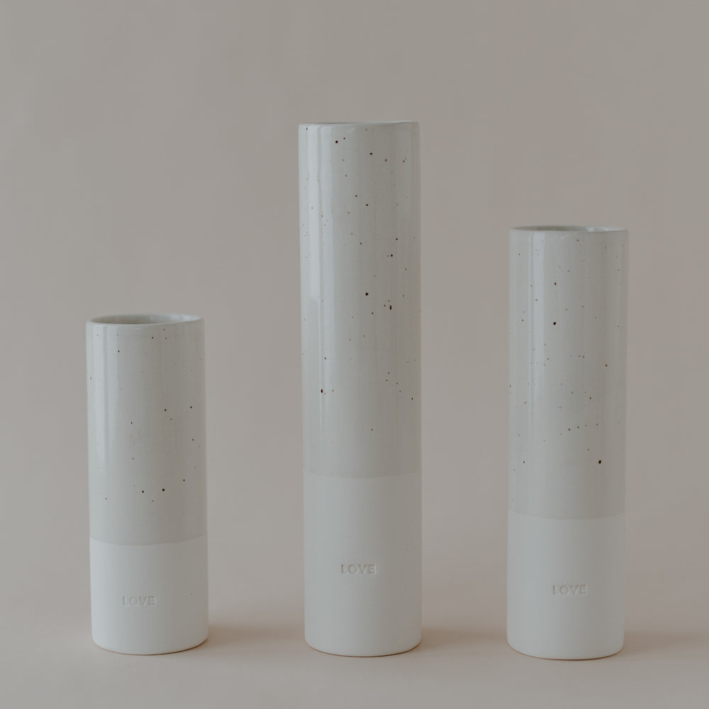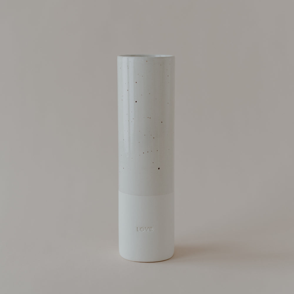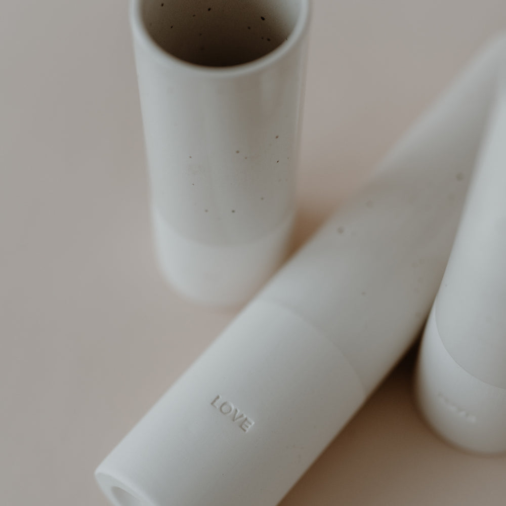 Ganz gleich ob es frische oder trockene Blumen sind, dank ihres minimalistischen Designs wird jede Blume in der Eulenschnitt Vase Love in Mittel zum Blickfang. Die 19,5 x 5,5 cm große Vase wurde in liebevoller Handarbeit gefertigt und besteht aus Steingut. Hier in unserem Shop kannst Du Dich von weiteren, tollen Eulenschnitt Produkten inspirieren lassen.