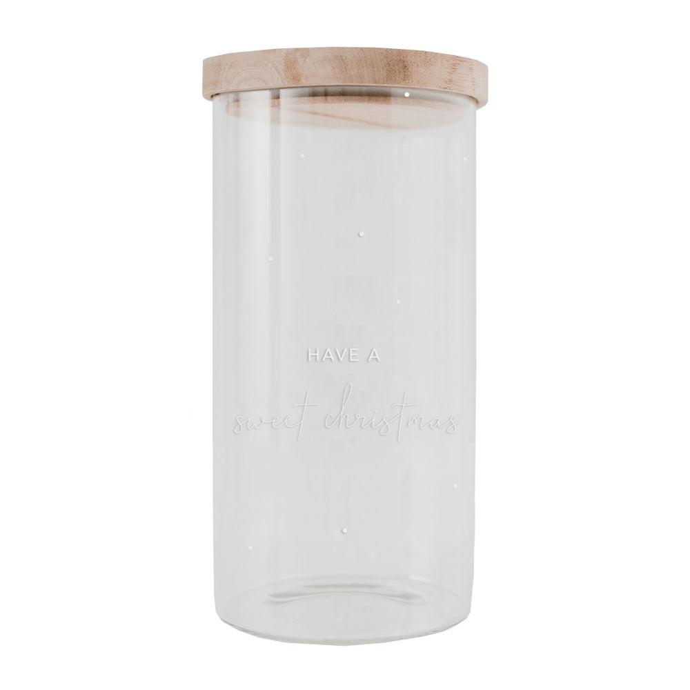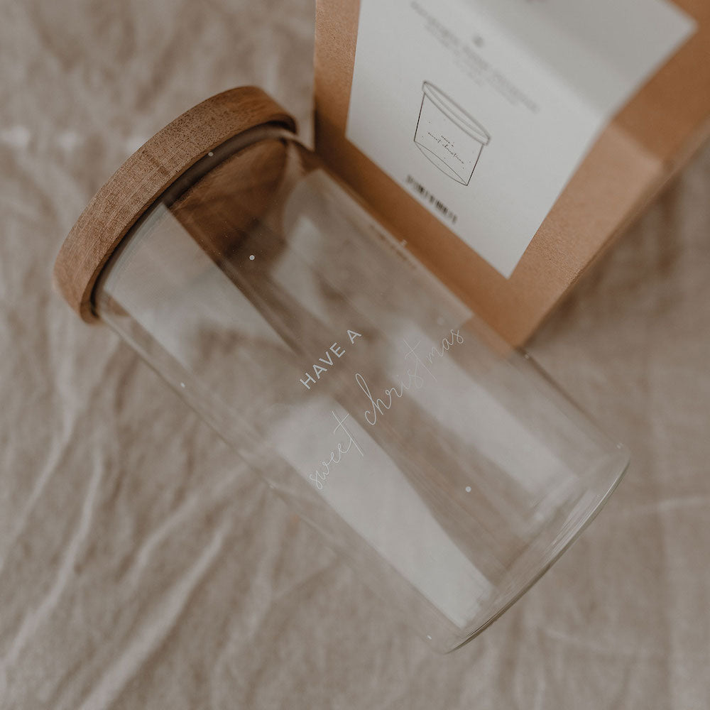 Das Eulenschnitt Vorratsglas Sweet Christmas weiß 19 cm eignet sich mit seiner Botschaft nicht nur für Deine Küche, sondern auch wunderbar als Geschenk. Deine Lieblingssüßigkeiten finden in diesem Vorratsglas gerne ihren Platz und da der Deckel sich problemlos anheben lässt, lädt es schnell zu einer kleinen Nascherei ein. Bitte behalte im Hinterkopf, dass es sich um Borosilikatglas und Akazienholz handelt – somit ist das Glas von Eulenschnitt nur für die Handwäsche geeignet und der Deckel nur zum feuchten Abwischen und sofortigen Abtrocknen.