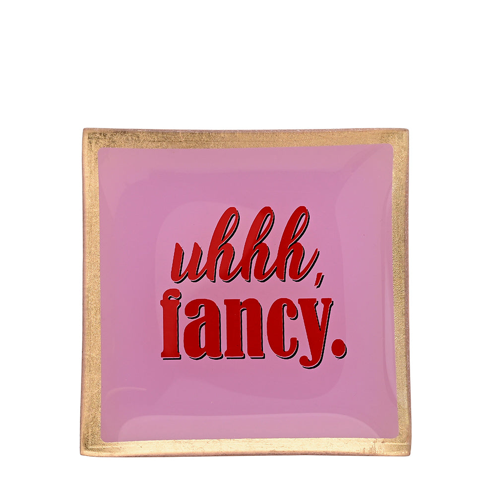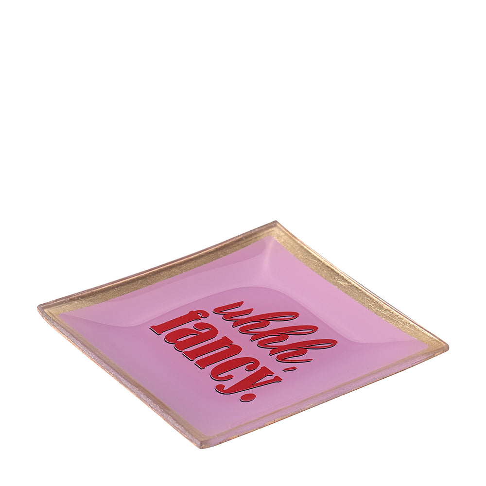 Der kleine Glasteller uhhh, fancy wird zum ausgefallenen Hingucker in Deinen vier Wänden. Gerade auf dem Tisch, der Kommode oder im Regal zieht der rosafarbene Glasteller alle Blicke auf sich. Natürlich kannst Du ihn auch prima als Dessertteller nutzen, für eine kleine Nascherei zwischendurch.