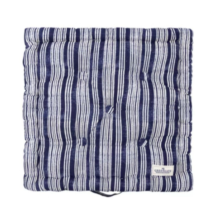 Die harmonische Farbkombination aus kräftigem Blau und klarem Weiß strahlt Ruhe und Frische aus. Sie lässt sich wunderbar mit hellen Holzmöbeln, Naturmaterialien oder weiteren maritimen Accessoires kombinieren. Ob auf einem Stuhl in der Küche, einer Bank im Flur oder als gemütliche Ergänzung auf dem Balkon – dieses Sitzkissen von Greengate setzt überall dekorative Akzente.