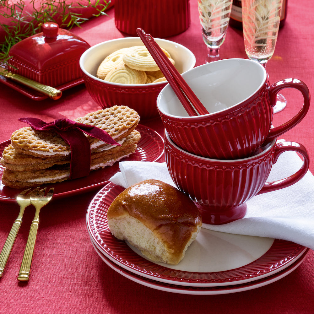 Das Weiß und das Rot des Greengate Frühstücksteller Alice Weinrot stehen einfach in richtiger Harmonie zu einander. Ein Kontrast der einfach schön aussieht. Jetzt kannst Du schon mal anfangen Dein erstes Frühstück zu planen, das Du Dir auf dem Frühstücksteller machen wirst, denn auf 23 cm findet sich genug Platz für all Deine Lieblingssachen – so startest Du perfekt in den Tag.