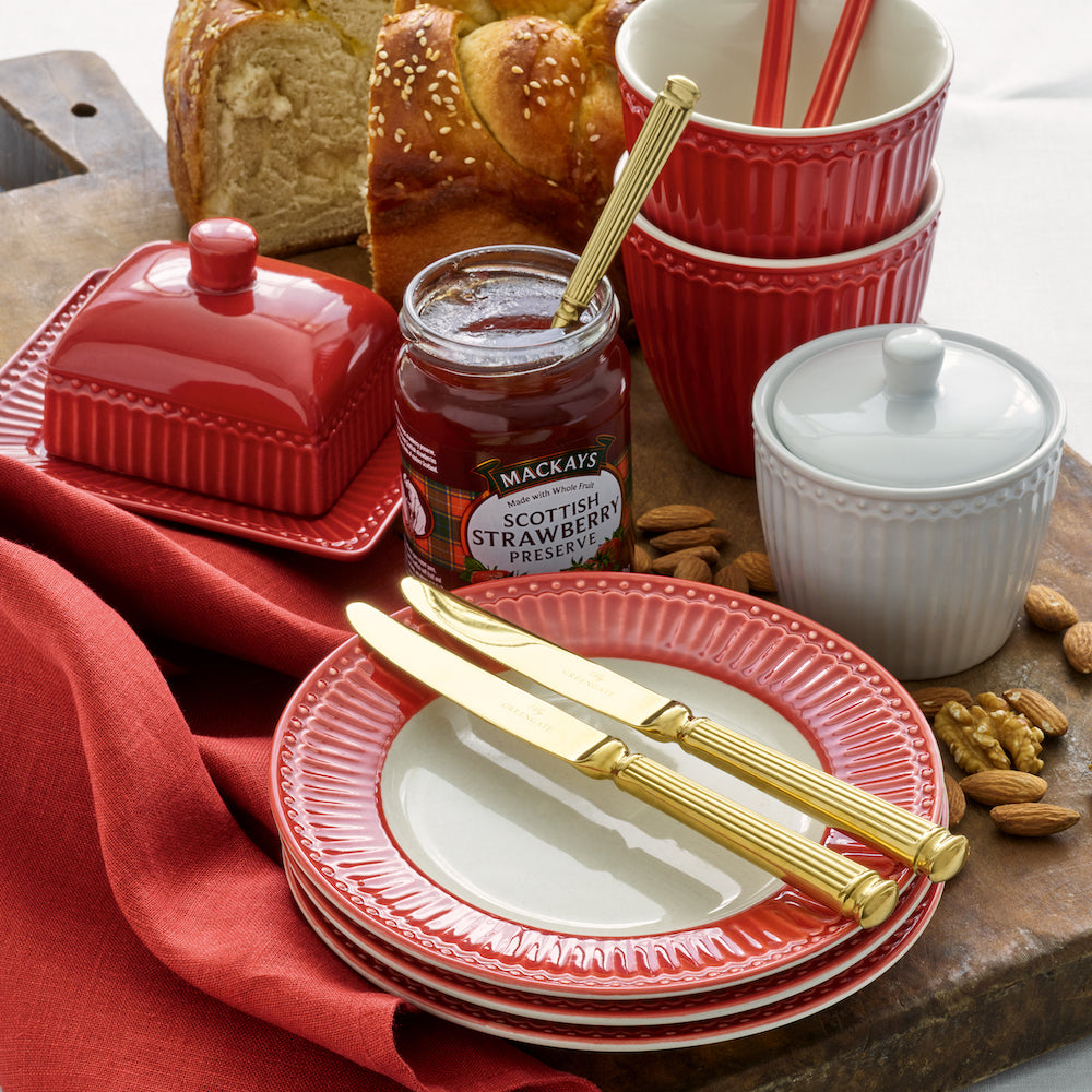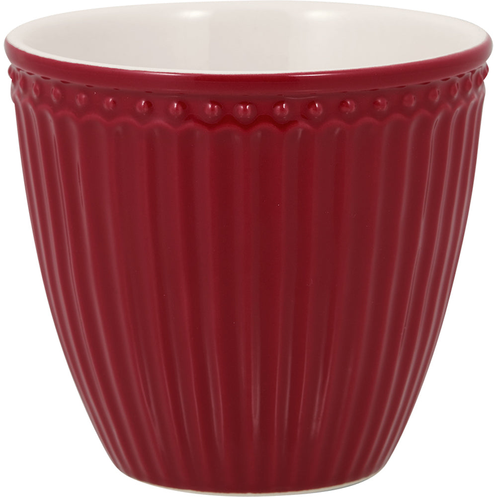 Dein neuer Greengate Latte Cup Weinrot wurde aus hochwertigem und robustem Steingut gefertigt, das eignet ihn sowohl für die Benutzung der Mikrowelle, als auch der Spülmaschine. Aber in dem Latte Cup lässt man sowieso nichts kalt werden, die rote Farbe zieht einen nämlich förmlich magisch an, sodass man den Latte Cup am liebsten gar nicht mehr aus der Hand stellen will. In den 9 x 10 cm Greengate Latte Cup passen perfekt 300 ml Deines bevorzugten Getränks.