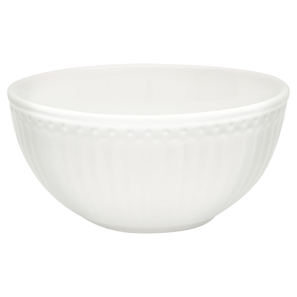 Eine wunderschöne Schüssel für Dein morgendliches Müsli oder viele andere Speisen bekommst Du mit diesem Exemplar aus dem Hause Greengate. Aus robustem Steingut gefertigt ist sie einfach zeitlos schön und passt in jede Geschirrsammlung. Ganz besonders macht die Schale aus der Alice-Serie zudem ihre Relief-Optik. Schlicht aber keineswegs langweilig. Kombiniere die Schüssel ganz wie Du magst mit dem vielen weiteren Geschirr von Greengate.