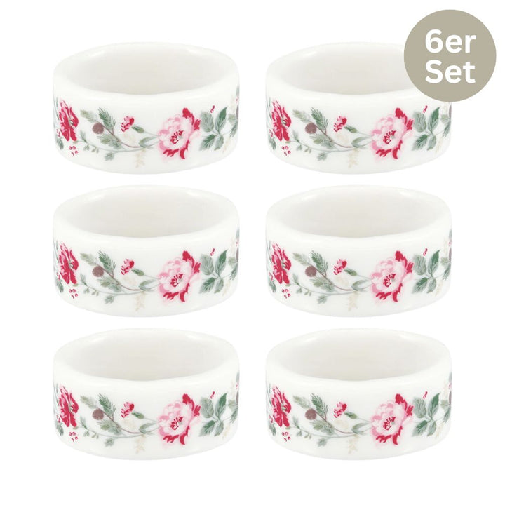 Dir fehlt noch das gewisse Etwas auf dem gedeckten Tisch? Das Serviettenring-6erSet „Leonora“ in Weiß von Greengate bringt eine Prise skandinavischen Zauber auf deine Tafel. Zart, verspielt und dennoch wunderbar zeitlos schmiegen sich die feinen Ringe mit dem Blumenmuster um deine Stoffservietten und verleihen jeder Tischdekoration etwas Besonderes.