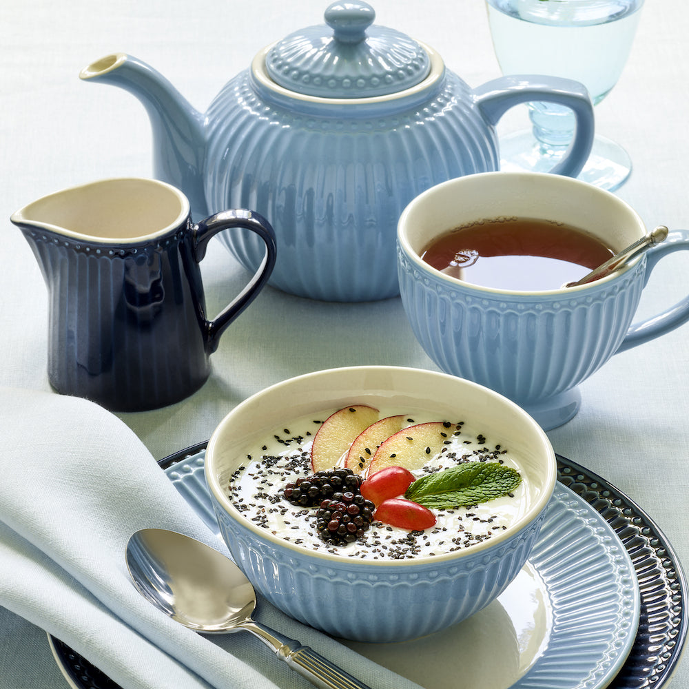 Ob rot, ob weiß, ob grau oder blau, die Alice Serie aus dem Hause Greengate hat sie alle und setzt dem Genuß das i-Tüpfelchen auf. Diese Teetasse in Himmelblau hat ein Fassungsvermögen von 400 ml. Es passt also ordentlich was rein. So kannst Du Dich für einen Moment mit einer heißen Tasse Tee entspannen und dabei glücklich sein. Lasse auch Du Dich von den tollen Greengate-Produkten inspirieren.