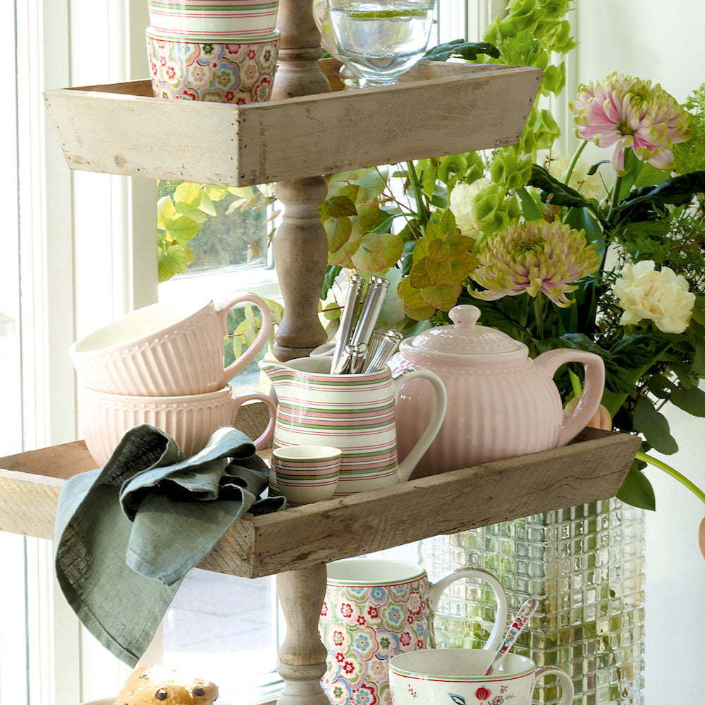 Selbstverständlich dürfen auch in der rosafarbenen Alice Serie die Teetassen nicht fehlen! Greengate hat einfach an jeden Moment des Genießens gedacht! Das wunderschöne Design und die vielen farblichen Möglichkeiten bringen immer wieder Freude auf Deinen Tisch. Lasse auch Du Dich von den tollen Greengate-Produkten inspirieren.