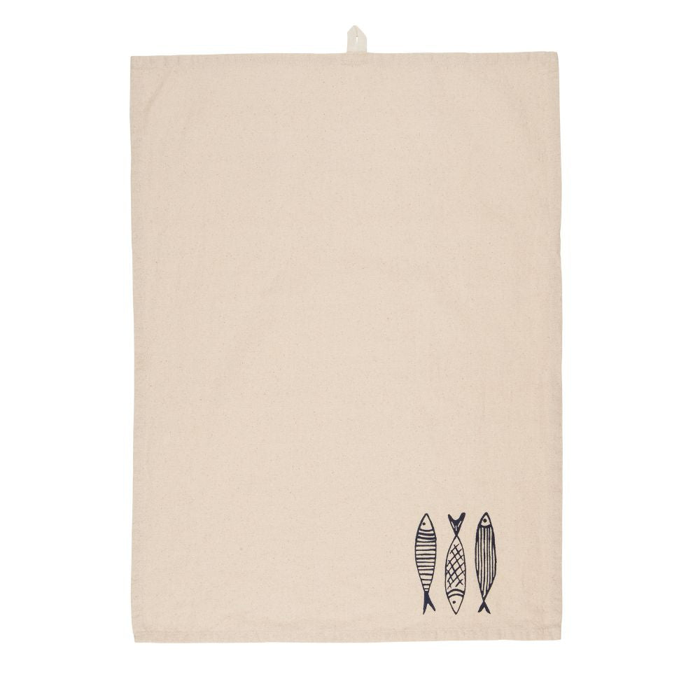 Ib Laursen Geschirrtuch blaue Fische cremefarben