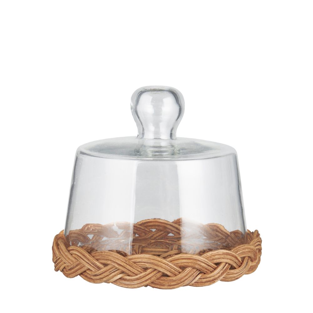 Ib Laursen Glasglocke mit Rattanboden niedrig