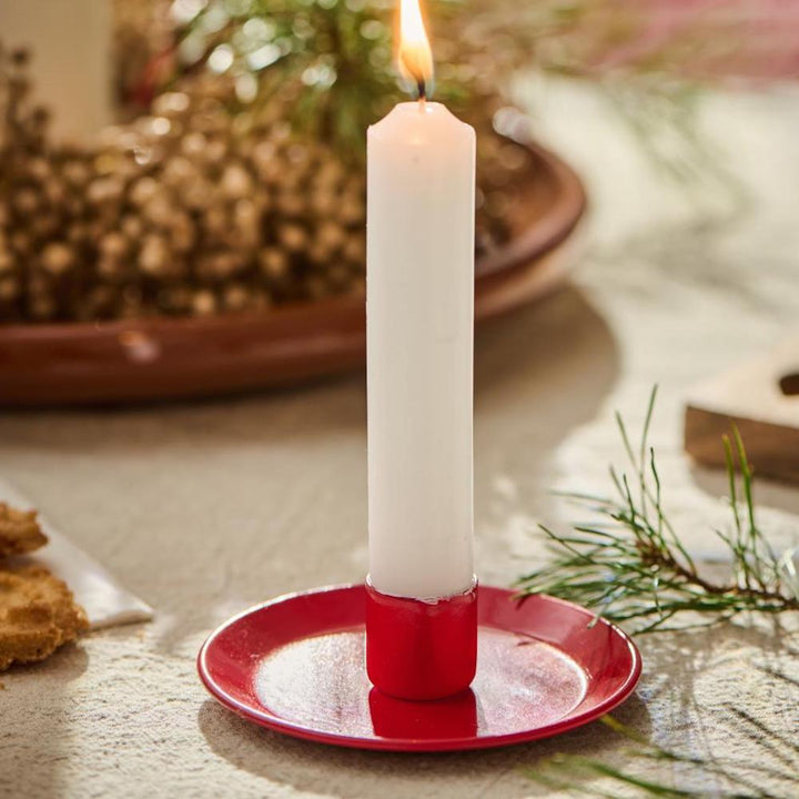 Einen Hauch von nordischer Schönheit bringt dieser rote Kerzenhalter in Dein Zuhause. Stelle ihn mit einer Stabkerze auf Dein Fensterbrett, Deinen Esstisch oder auf ein Sideboard und genieße das sanfte Flackern des Lichtes in der Weihnachtszeit. Der Kerzenhalter ist für Kerzen mit einem Durchmesser von 2,2 cm geeignet. Es passen zum Beispiel die IB Laursen 4er-Set Adventskerzen 1 - 4 weiß sehr gut zu diesem Kerzenhalter.