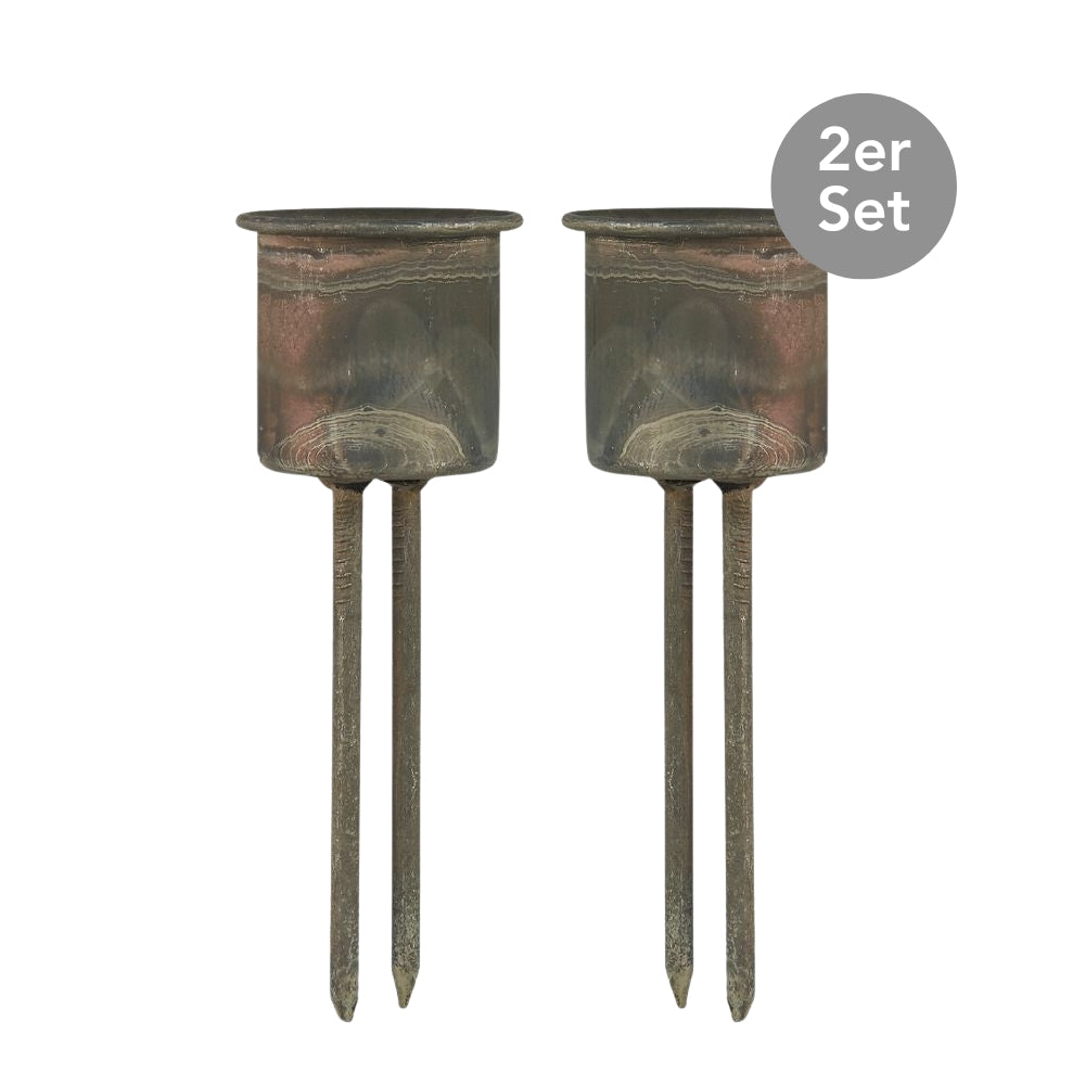Ib Laursen Spieß Kerzenhalter zinkfarben 2er-Set