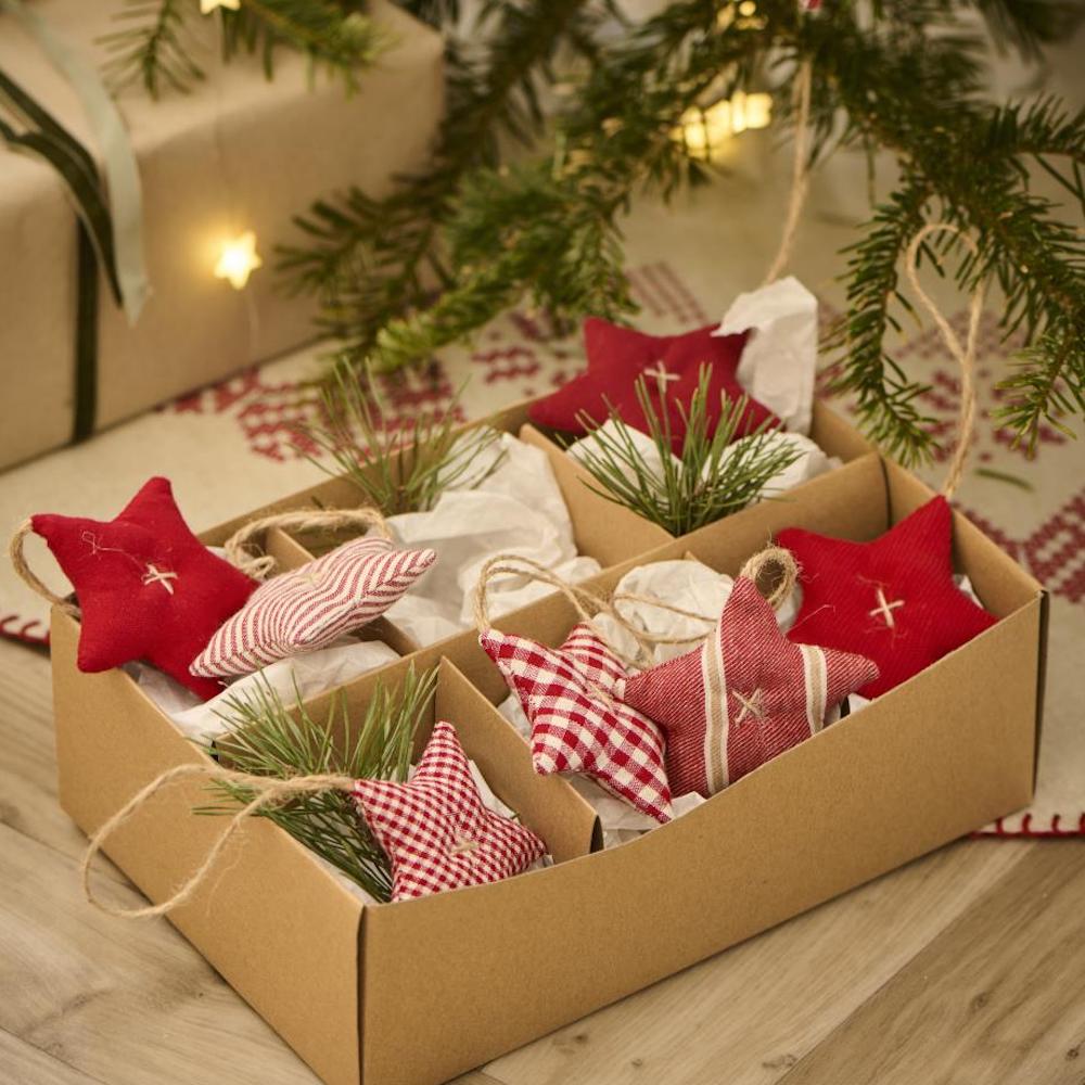 Wenn Du Deinem Zuhause einen charmanten, verspielten Akzent verleihen möchtest, sind die Ib Laursen Sterne Tona aus Stoff genau die Richtigen für Dich. Diese wunderschönen Dekosterne fügen sich harmonisch in jede Adventsdekoration ein. Mit einer Breite von 9 cm und einer Höhe von 8,5 cm sind die Sterne auch einzeln ein echter Hingucker am Tannenbaum oder im Fenster. Wir wünschen Dir viel Spaß mit den weihnachtlichen Produkten von Ib Laursen.