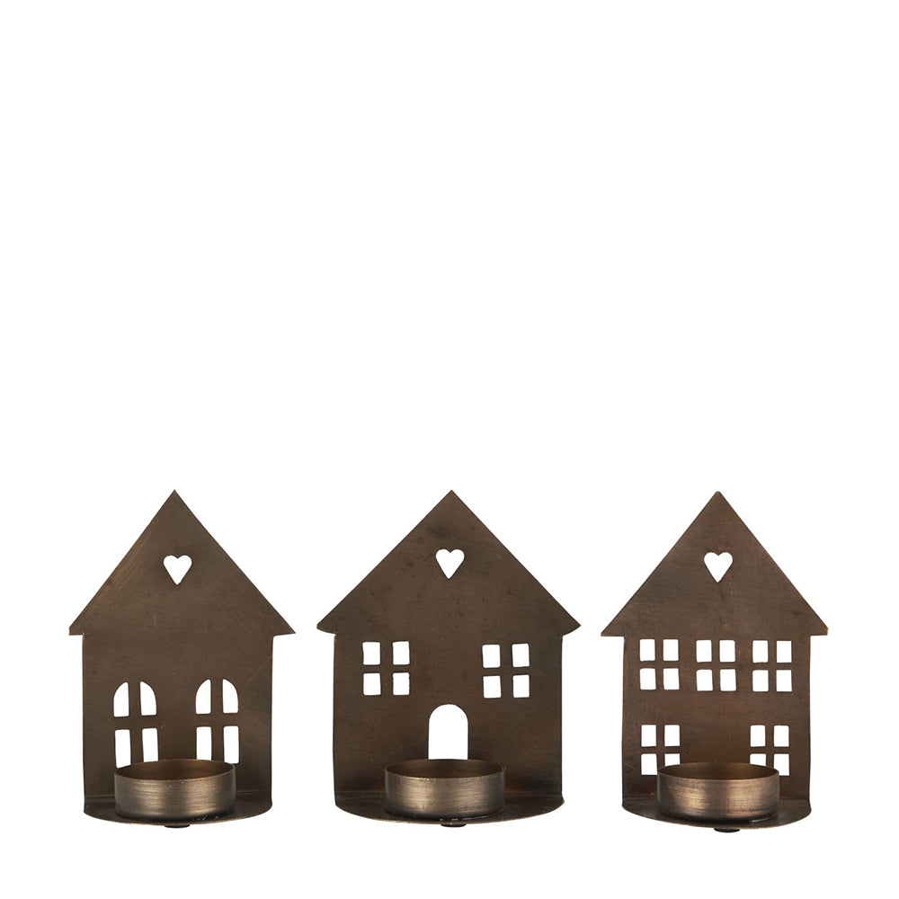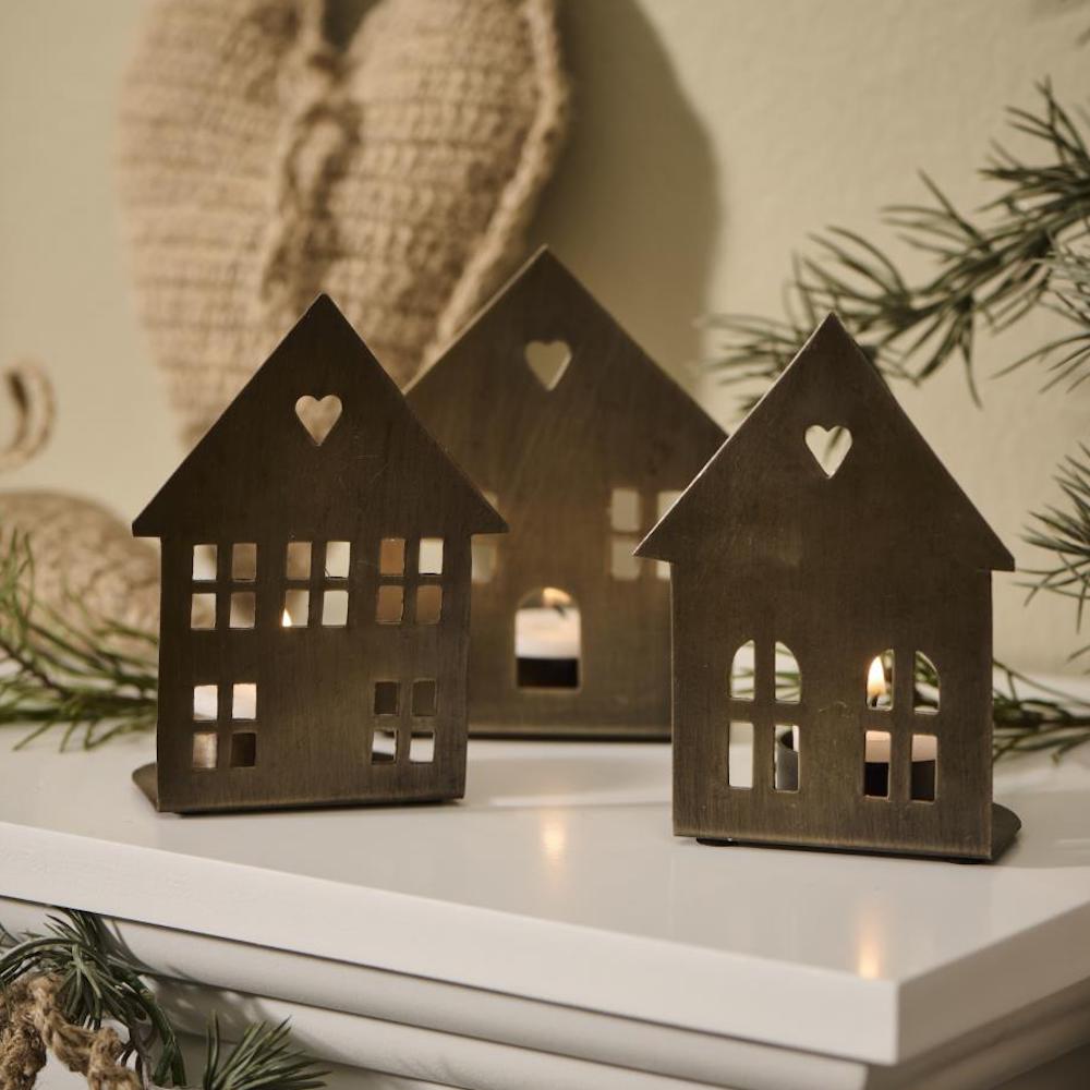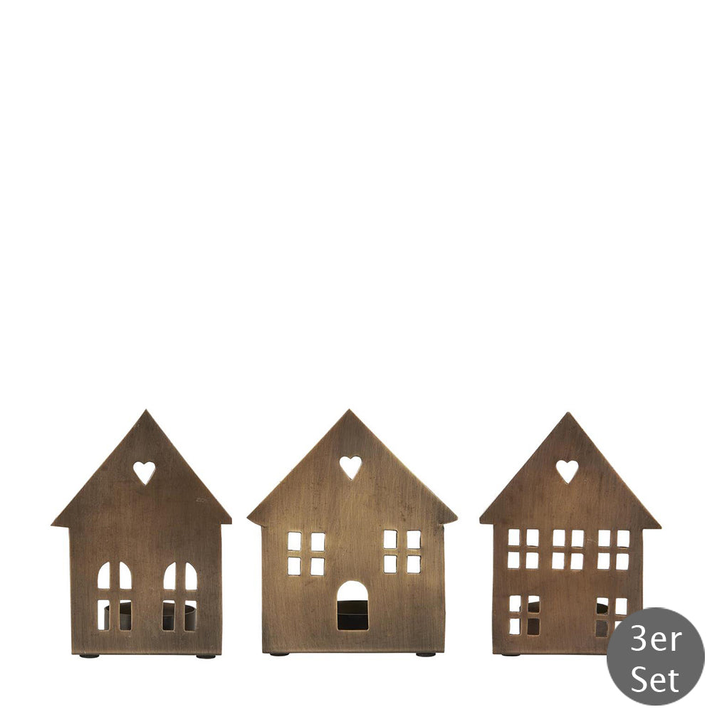 Ib Laursen Teelichthalter Häuser 3er-Set messingfarben