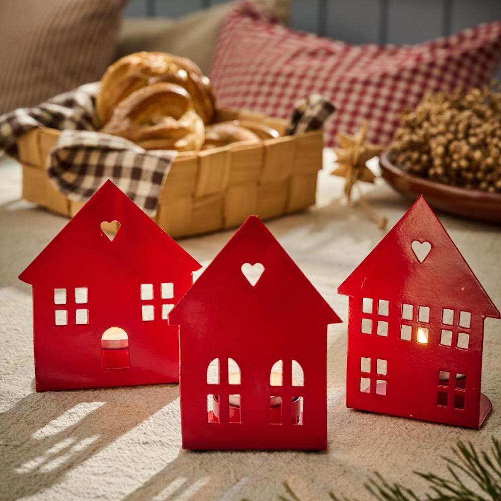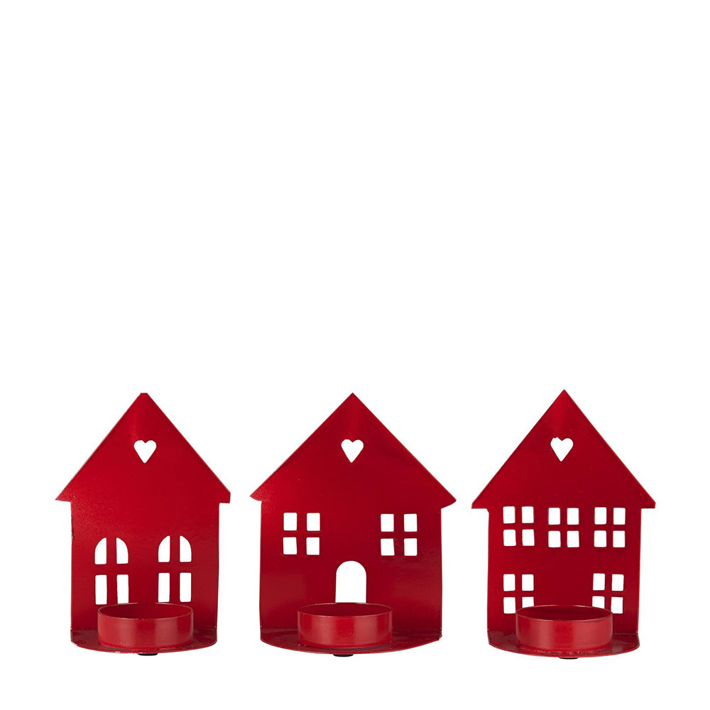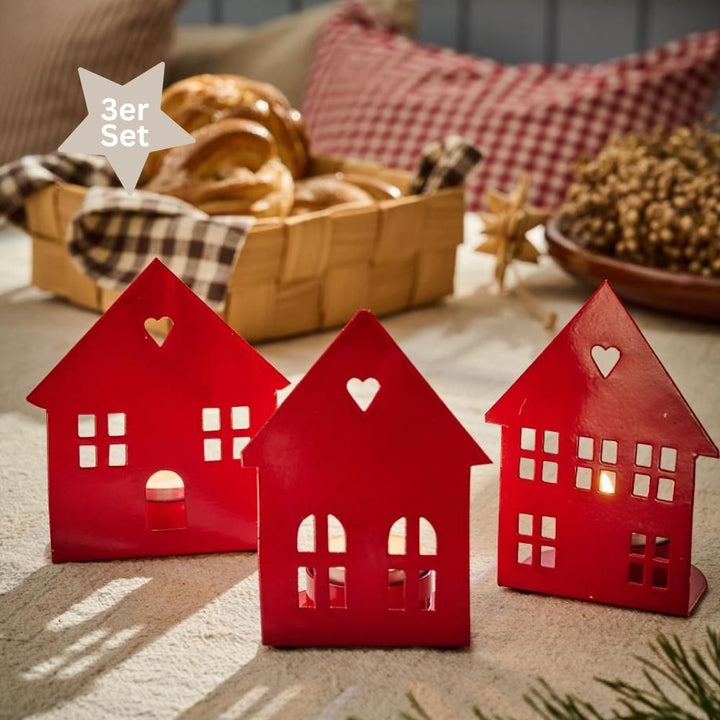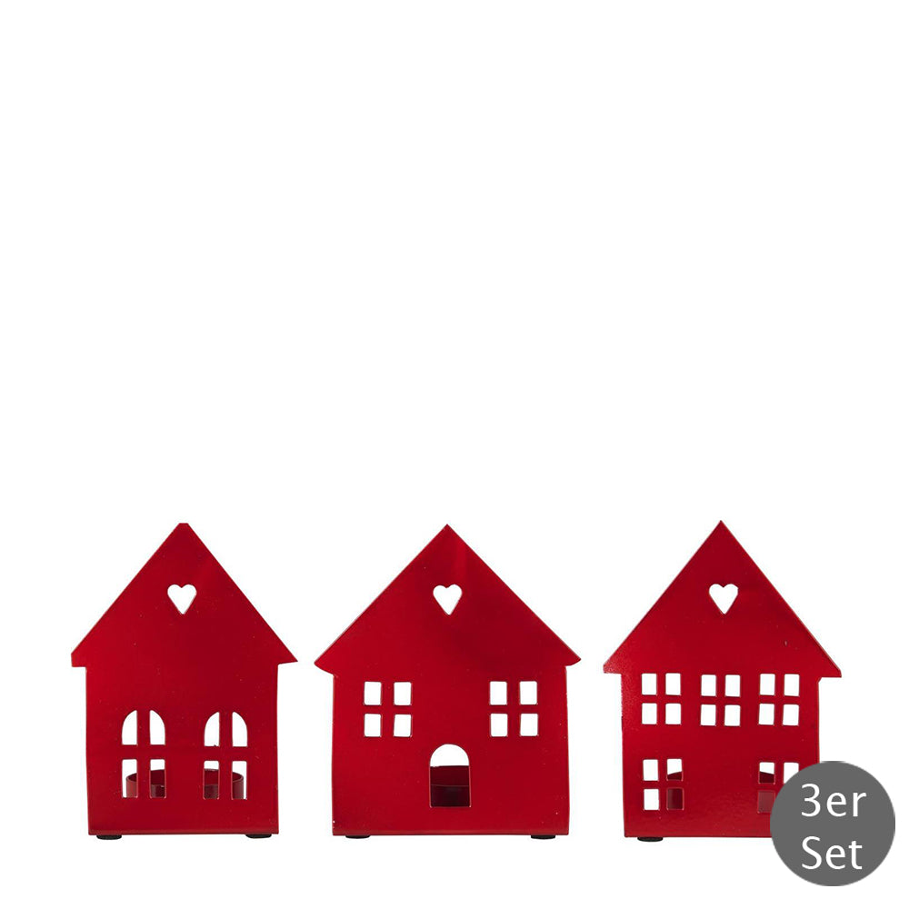 Ib Laursen Teelichthalter Häuser 3er-Set rot