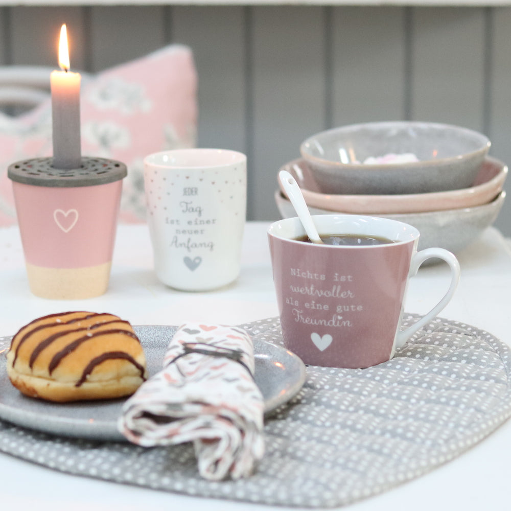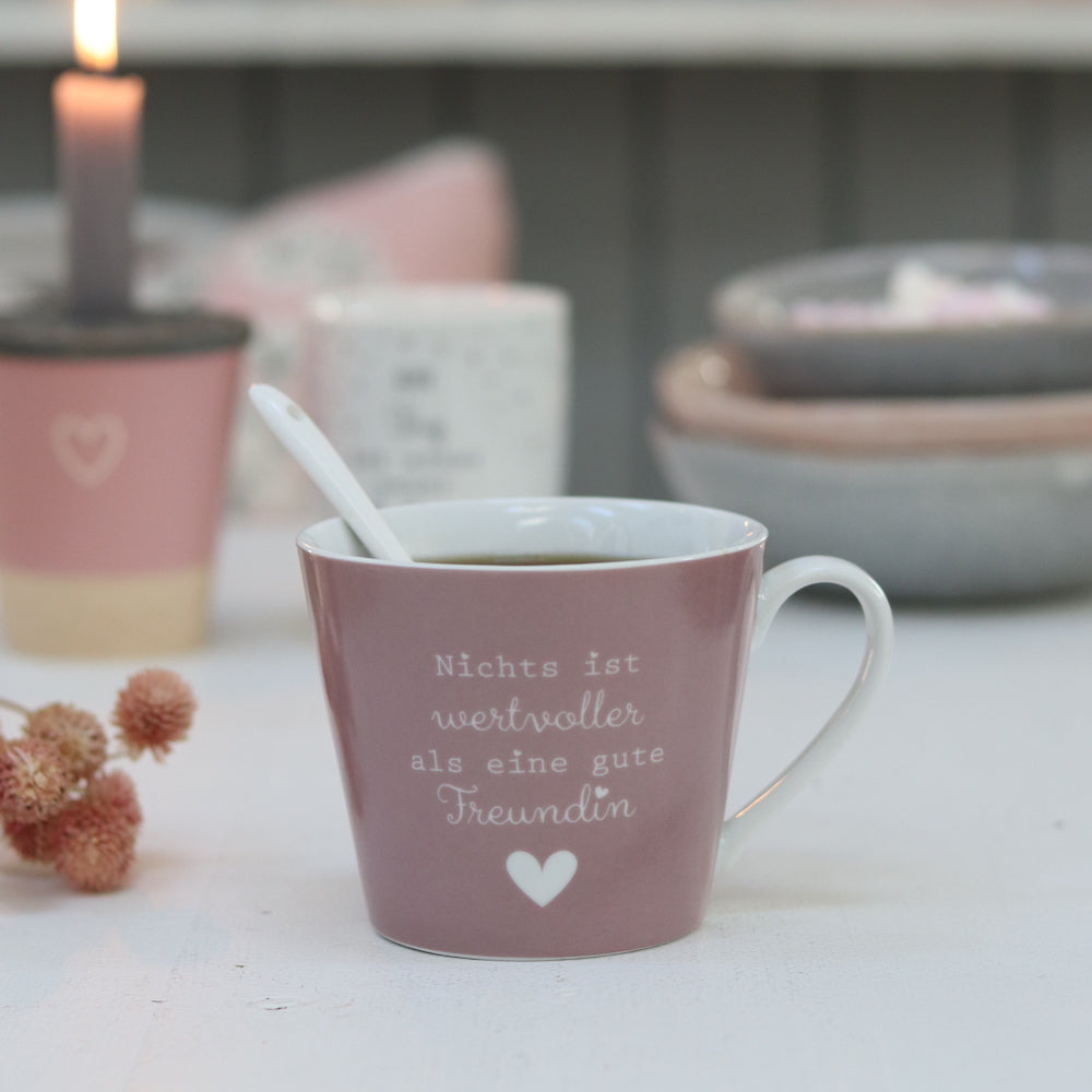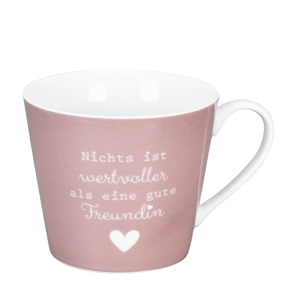 Um einer lieben Freundin einfach mal zu zeigen, wie gerne Du sie hast, gibt es nichts besseres als die Happy Cup Wertvoller von Krasilnikoff als Geschenk. Nichts ist wertvoller als eine gute Freundin. Die schöne Botschaft auf der rosafarbenen Porzellantasse wird von einem für Krasilnikoff typischen Herz unterstrichen und drückt aus, wie dankbar Du Deiner Freundin für alles bist!