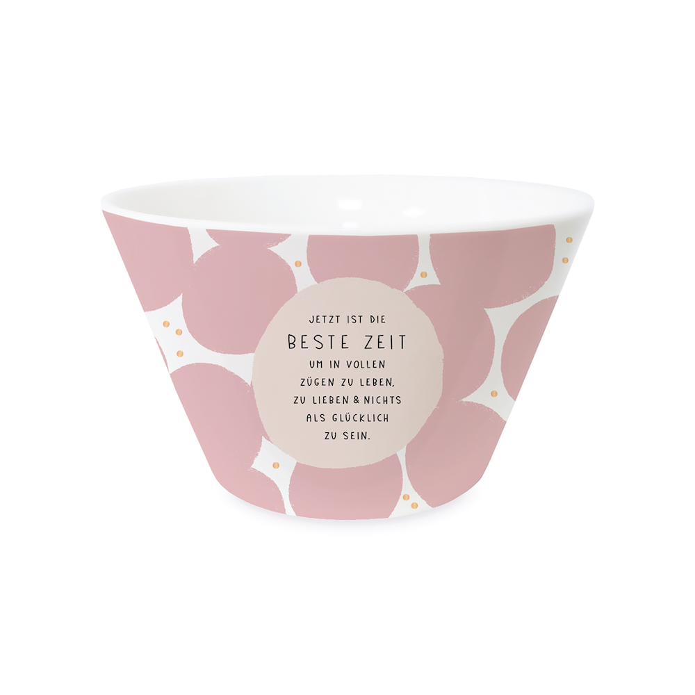Jetzt ist die beste Zeit, um in vollen Zügen zu leben, zu lieben & nichts als glücklich zu sein. Starte Deinen Tag doch mit dieser hübschen Müslischale und frischem Obst oder Deinem Lieblingsmüsli. Aber auch für Nüsse und Kekse eignet sich die Schale hervorragend - nur für`s Im-Schrank-stehen ist sie wirklich zu schade! Die Porzellan-Schale besitzt eine Echtgold-Veredelung, weshalb Du sie nur mit der Hand abspülen solltest.