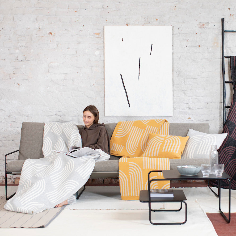 Der schöne Nordic Überwurf in Hellgrau ist nicht nur perfekt für um ihn über Dein Bett oder Sofa zu legen als Hingucker, sondern eignet sich auch prima als kuschelige Decke. Denn dank des hohen Anteils an Baumwolle ist der Überwirf schön weich. Die graue Decke, mit ihren vielen weißen Bögen und Streifen, hat eine Größe von 220 x 145 cm und darf bei 40°C im Schonwaschgang gewaschen werden.